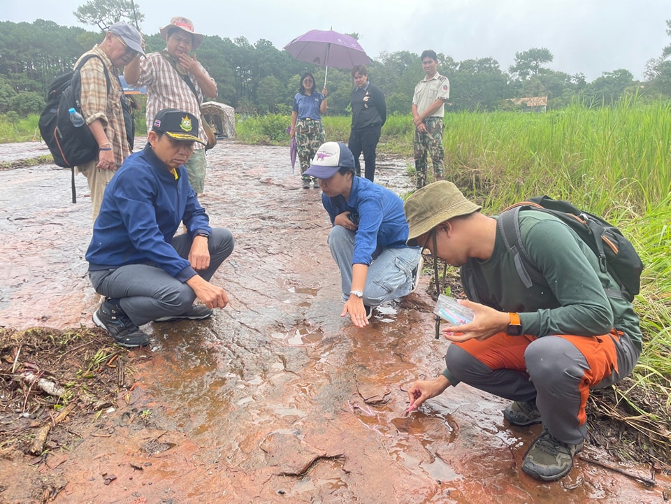 3 สิงหาคม 2567 นายโกเมศ พุทธสอน ผู้อำนวยการสำนักบริหารพื้นที่อนุรักษ์ที่ 11 (พิษณุโลก) เปิดเผยว่าได้รับรายงานจากนายลำยอง ศรีเสวก หัวหน้าอุทยานแห่งชาติภูหินร่องกล้า จังหวัดพิษณุโลก ว่ามีผู้พบเห็นร่องรอยลักษณะคล้ายรอยเท้าไดโนเสาร์ บริเวณลานจอดเฮลิคอปเตอร์ ใกล้ลานกางเต็นท์อุทยานแห่งชาติภูหินร่องกล้า ซึ่งนายลำยอง ศรีเสวก หน.อช.ภูหินร่องกล้า ได้ดำเนินการประสานกับสำนักงานทรัพยากรธรณี เขต 2 เพื่อเข้ามาร่วมกันดำเนินการสำรวจพิสูจน์ข้อเท็จจริง
