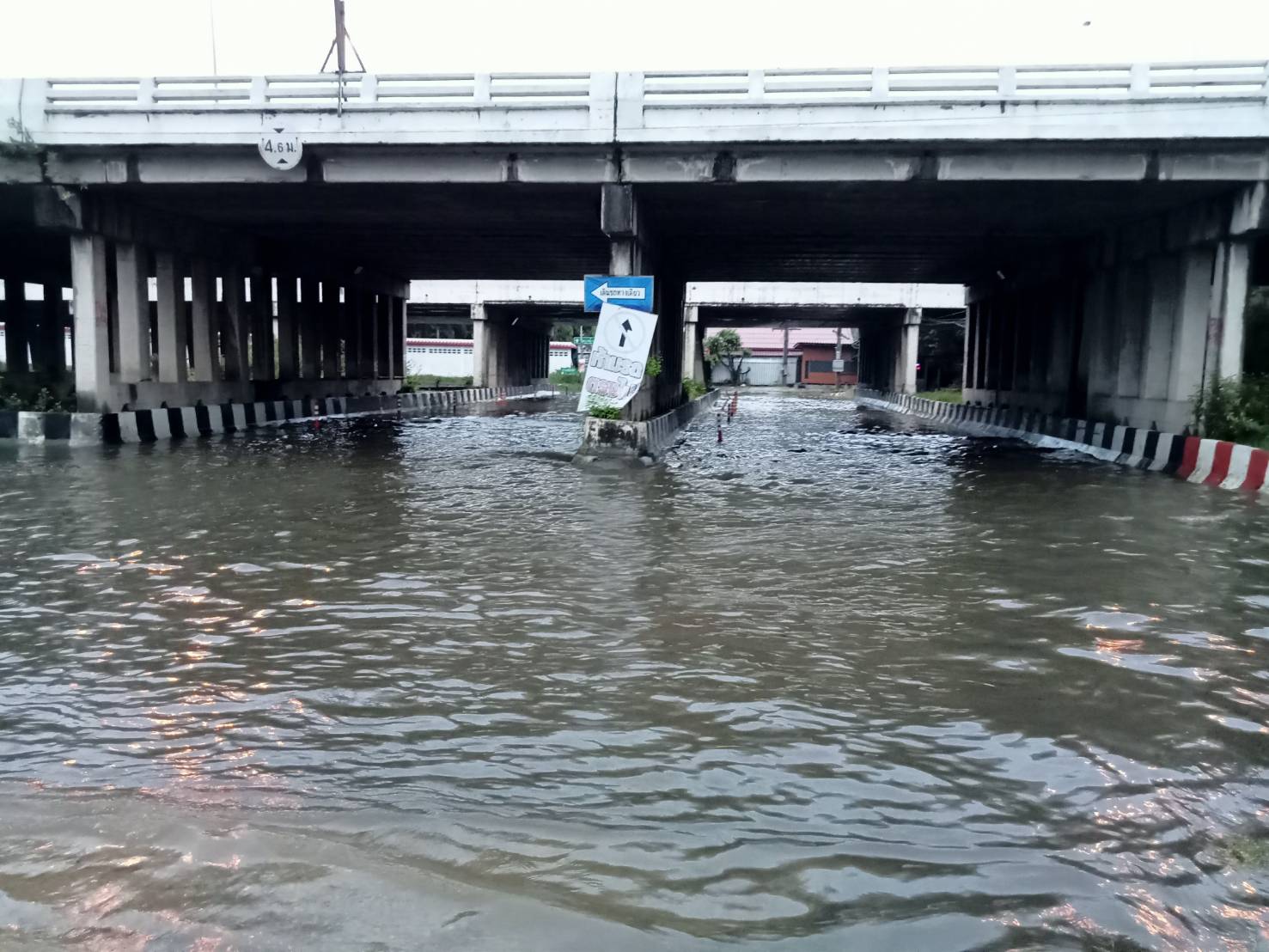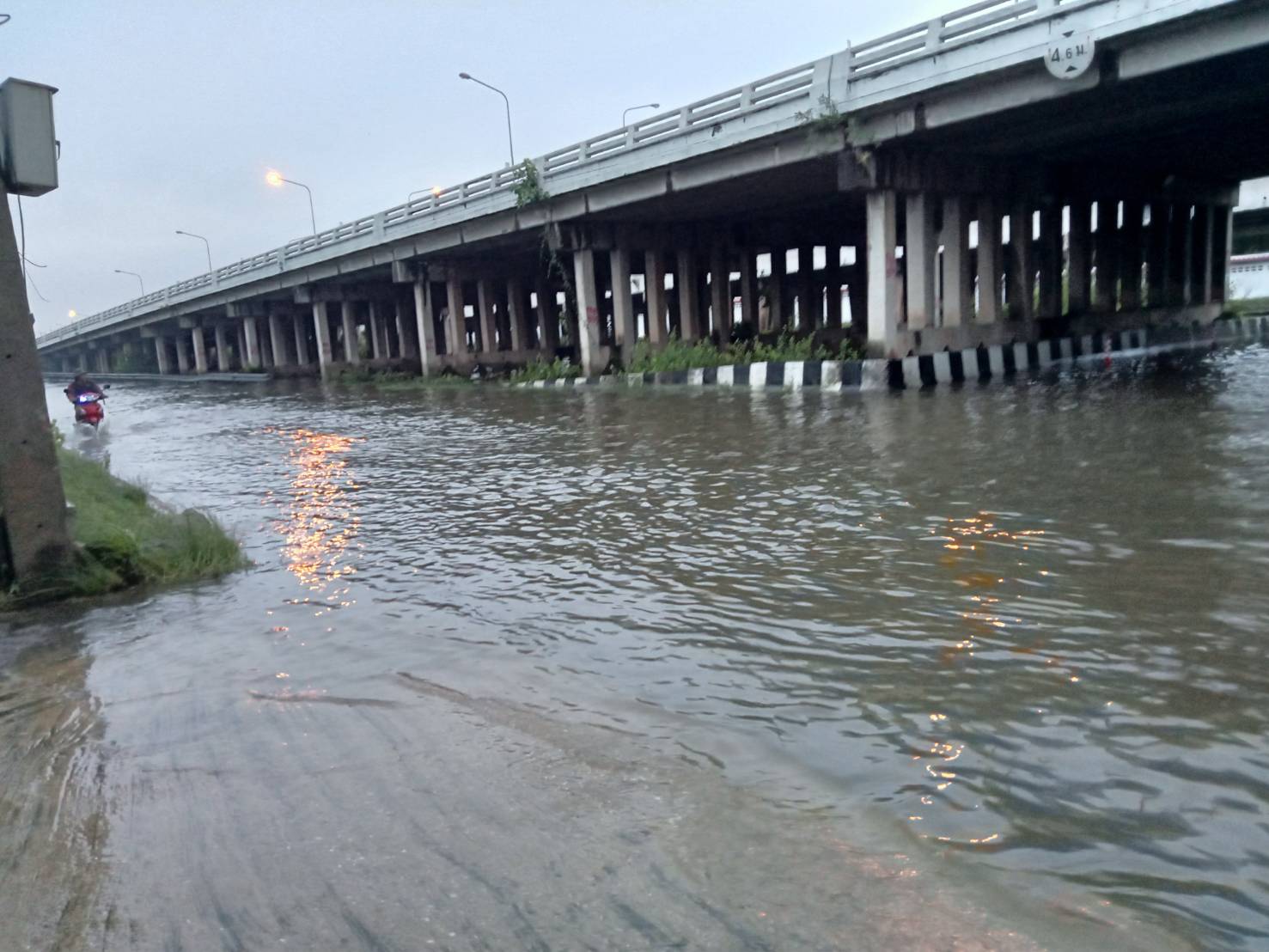 ถนนพระราม 2 ขาออก จุดกลับรถสะพานข้ามคลองตาขำ หน้าโรงเรียนสารสาสน์วิเทศสมุทรสาคร น้ำท่วมขังสูง เนื่องจากเมื่อคืน ฝนตกหนัก และเช้านี้ มีน้ำทะเลหนุนสูงด้วย รถเล็กแนะนำหลีกเลี่ยงเส้นทาง #รายงานจราจร #รถติด #น้ำท่วม #FM91