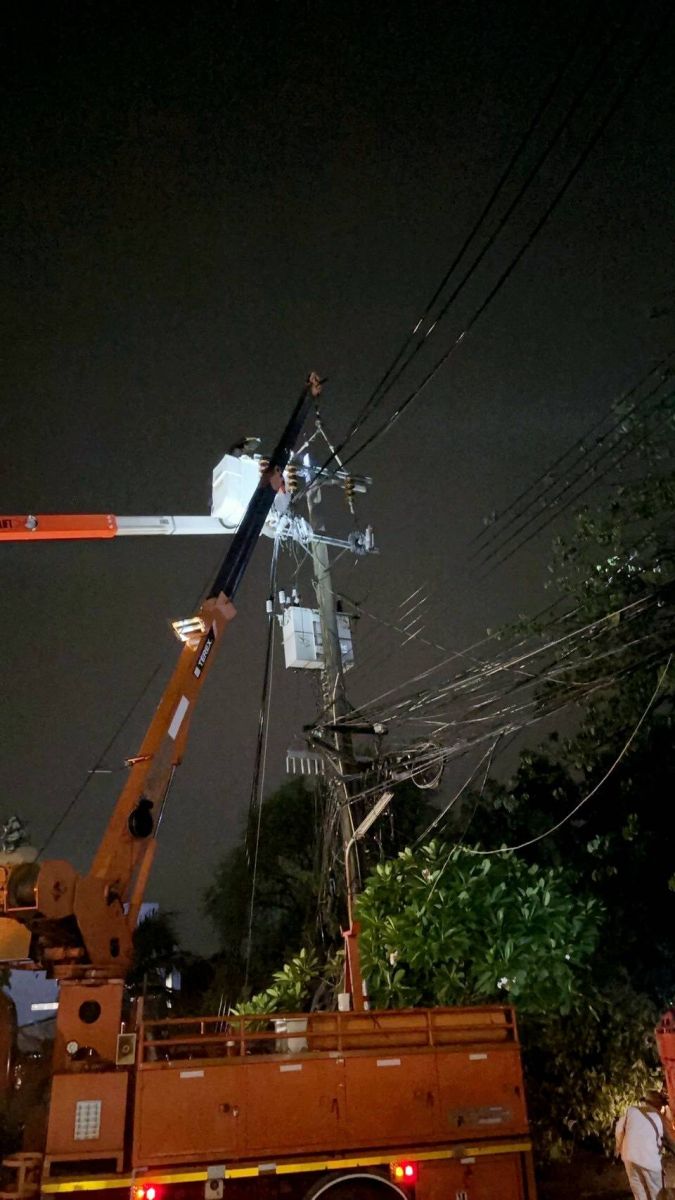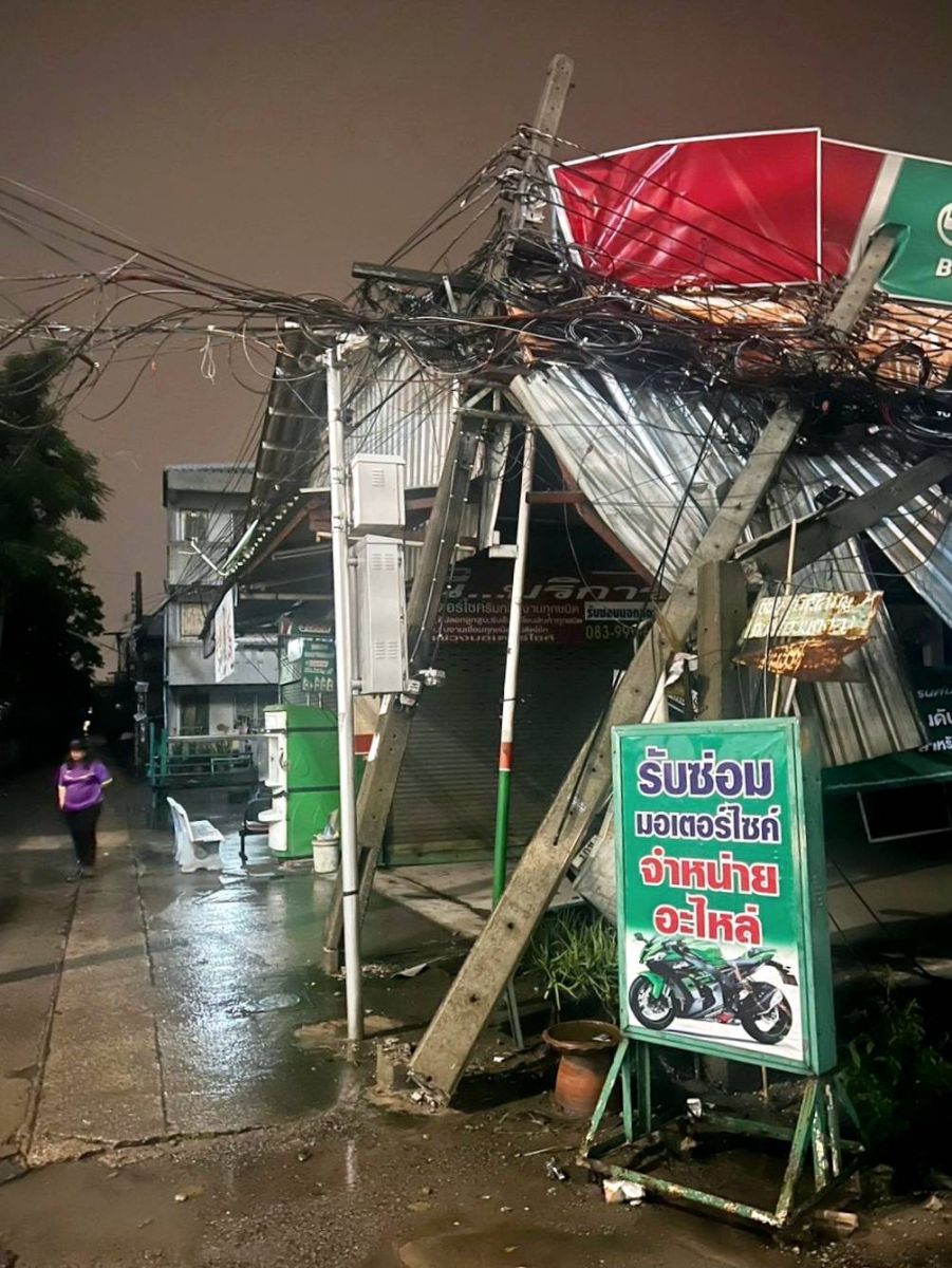 MEA ระดมเจ้าหน้าที่แก้ไขเหตุพายุลมแรงทำให้ต้นไม้ล้มทับสายไฟฟ้าเหนี่ยวรั้งทำให้เสาไฟฟ้าหักบริเวณซอยรามคำแหง 131