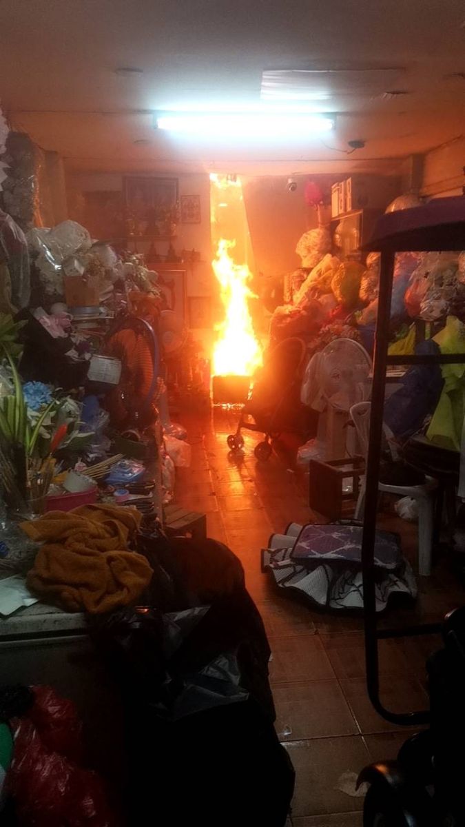ลักษณะที่เกิดเหตุเป็นอาคารพาณิชย์ 3 ชั้น ประกอบกิจการจำหน่ายดอกไม้สดและพวงหรีด ต้นเพลิงเกิดขึ้นที่ชั้น 2 เพลิงลุกไหม้บริเวณชั้นที่ 2 ชั้นที่ 3 และลุกลามอาคารข้างเคียงบริเวณชั้นที่ 3 เสียหายทั้งหมด พื้นที่เพลิงไหม้เสียหายโดยประมาณ 128 ตารางเมตร รถดับเพลิงใช้น้ำทำการดับเพลิงสงบ