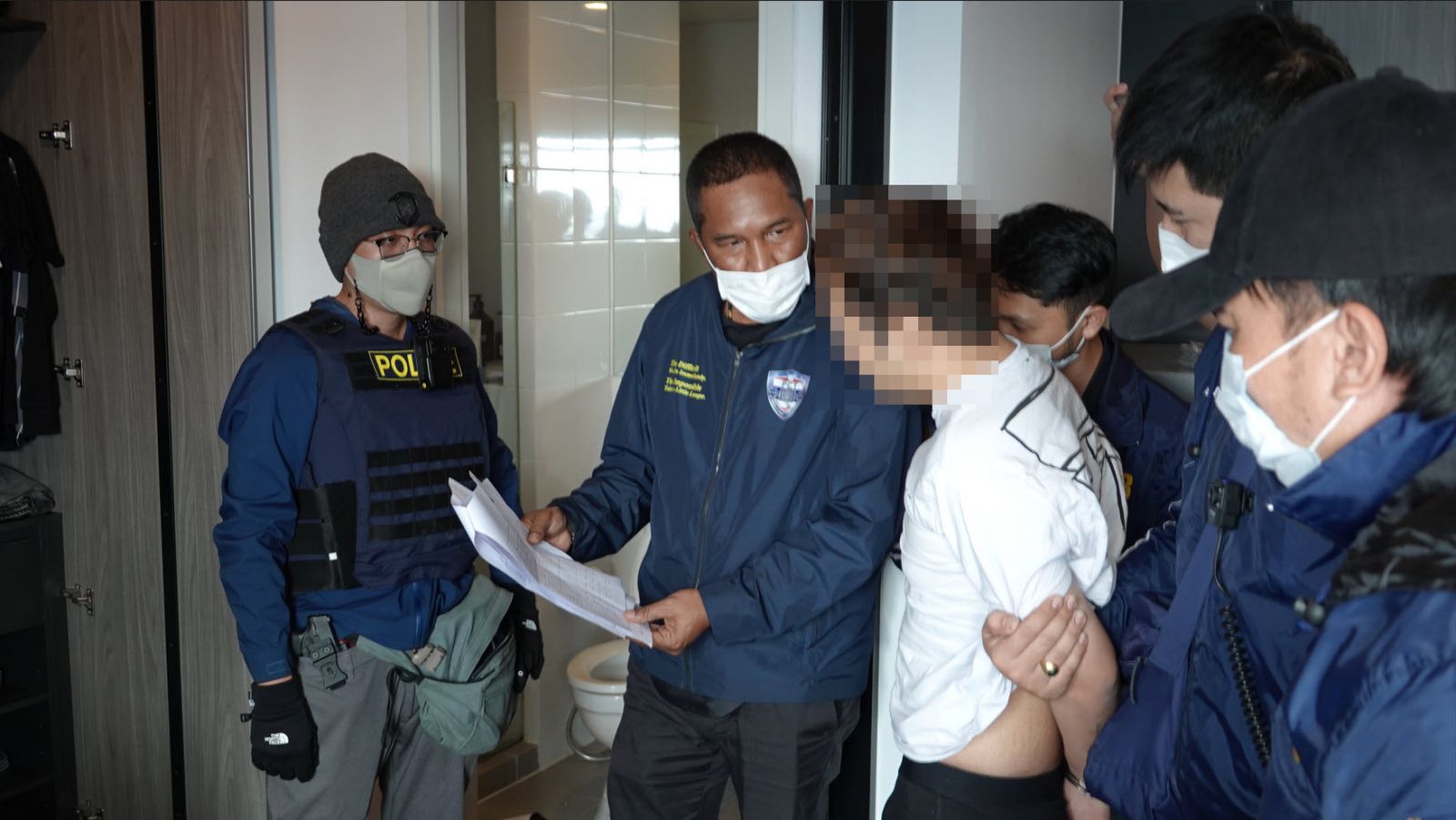 ต่อมาวันที่ 23 ก.พ. 66 เวลา 15.16 น. ได้นำกำลังเจ้าหน้าที่ตร. นำหมายค้นของศาลจังหวัดสมุทรปราการ เข้าตรวจค้นห้องพักในคอนโดดังกล่าว จนได้พบตัว นายจีมิน-ซ็อง อยู่ในห้องพัก และได้ทำการจับกุมตัวตามหมายจับ และตรวจยึดของกลางโทรศัพท์ 2 เครื่อง ซึ่งใช้ในการติดต่อสั่งนำเข้ายาเสพติดจากต่างประเทศ และตรวจยึดทรัพย์สินอีกจำนวน 22 รายการ
