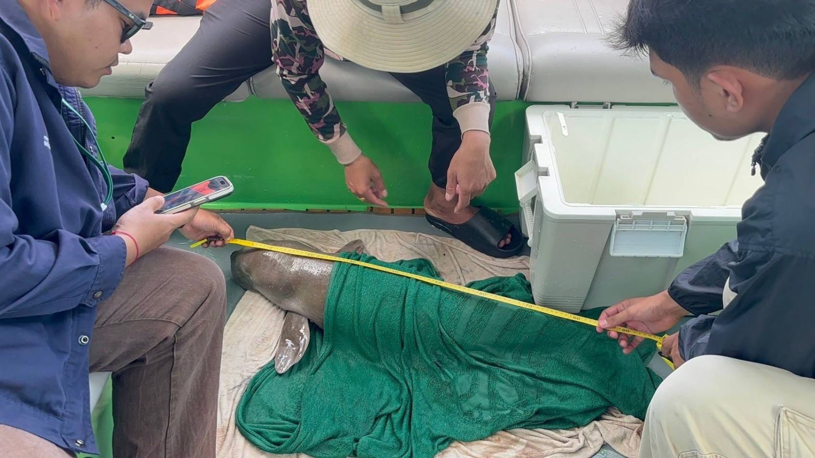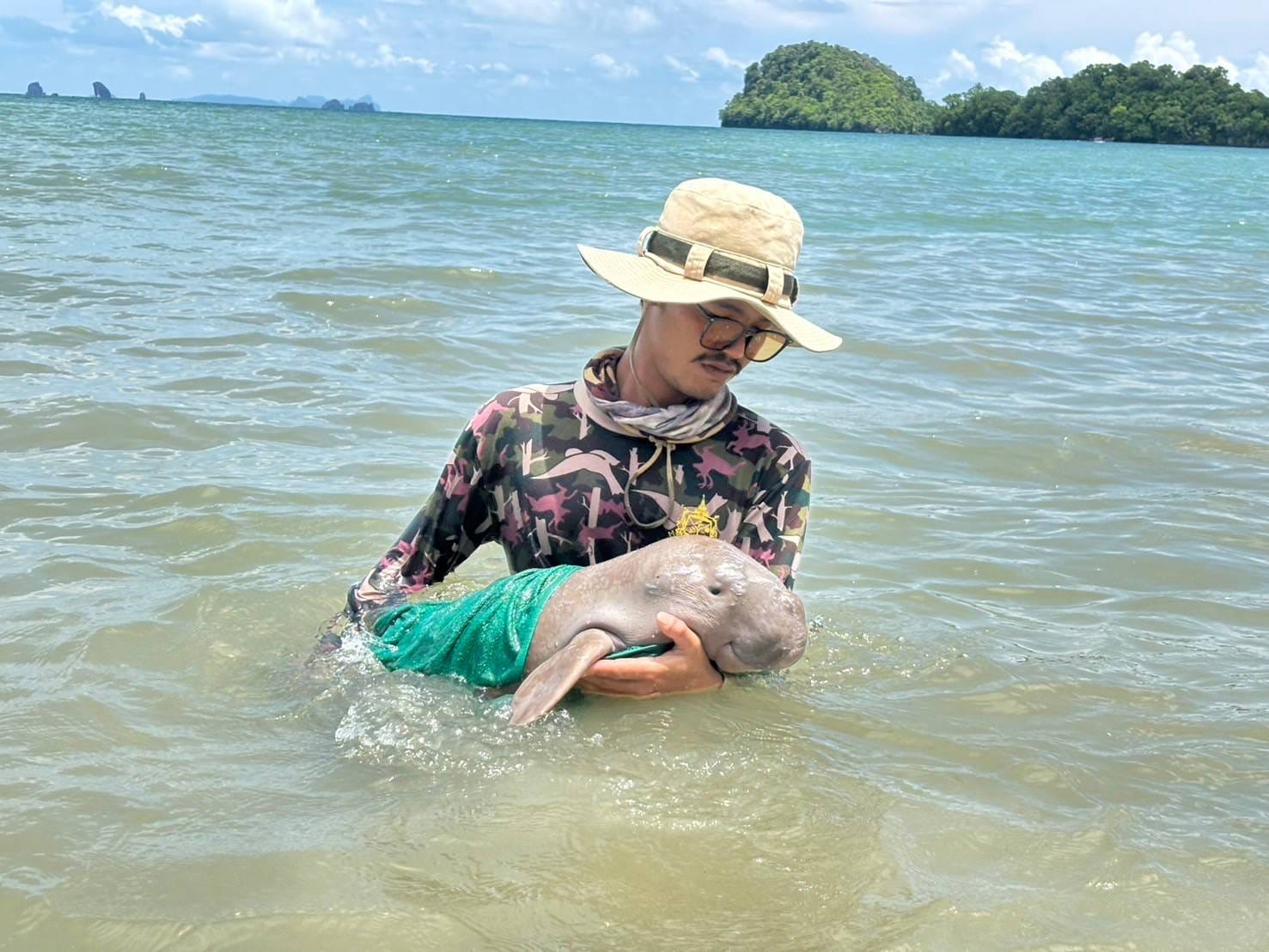 โดยเมื่อเวลา 12.00 น. (10 ส.ค.67) อุทยานแห่งชาติหาดนพรัตน์ธารา-หมู่เกาะพีพี ดำเนินการสำรวจสัตว์ทะเลหายากและใกล้สูญพันธุ์ และพบลูกพะยูนวัยแรกเกิด เพศผู้ ขนาดลำตัวยาวประมาณ 95 เซนติเมตร น้ำหนักประมาณ 15 - 20 กิโลกรัม ในสภาพร่างกายอ่อนแรง มีรอยขีดข่วนบริเวณส่วนหัว ที่บริเวณเกาะปอดะ จากการตรวจสอบเบื้องต้น เจ้าหน้าที่คาดว่าพลัดหลงกับแม่พะยูนทำให้ลูกพะยูนไม่ได้รับนมแม่จนร่างกายอ่อนแรง เบื้องต้นสภาพร่างกายค่อนข้างผอม ร่างกายอ่อนแรง มีรอยขีดข่วนบริเวณส่วนหัว ไม่มีบาดแผลฉกรรจ์ตามลำตัว เจ้าหน้าที่จึงได้ประสานงานกับสัตวแพทย์จากศูนย์วิจัยทรัพยากรทางทะเลและชายฝั่งทะเลอันดามันตอนล่าง จังหวัดตรัง เพื่อขอคำแนะนำในการดูแลและรักษาเบื้องต้น และแนะนำให้พาลูกพะยูนกลับเข้าฝั่งเพื่อให้ศูนย์วิจัยทรัพยากรทางทะเลและชายฝั่งทะเลอันดามันตอนล่าง จังหวัดตรัง รับไปดูแลรักษาต่อไป