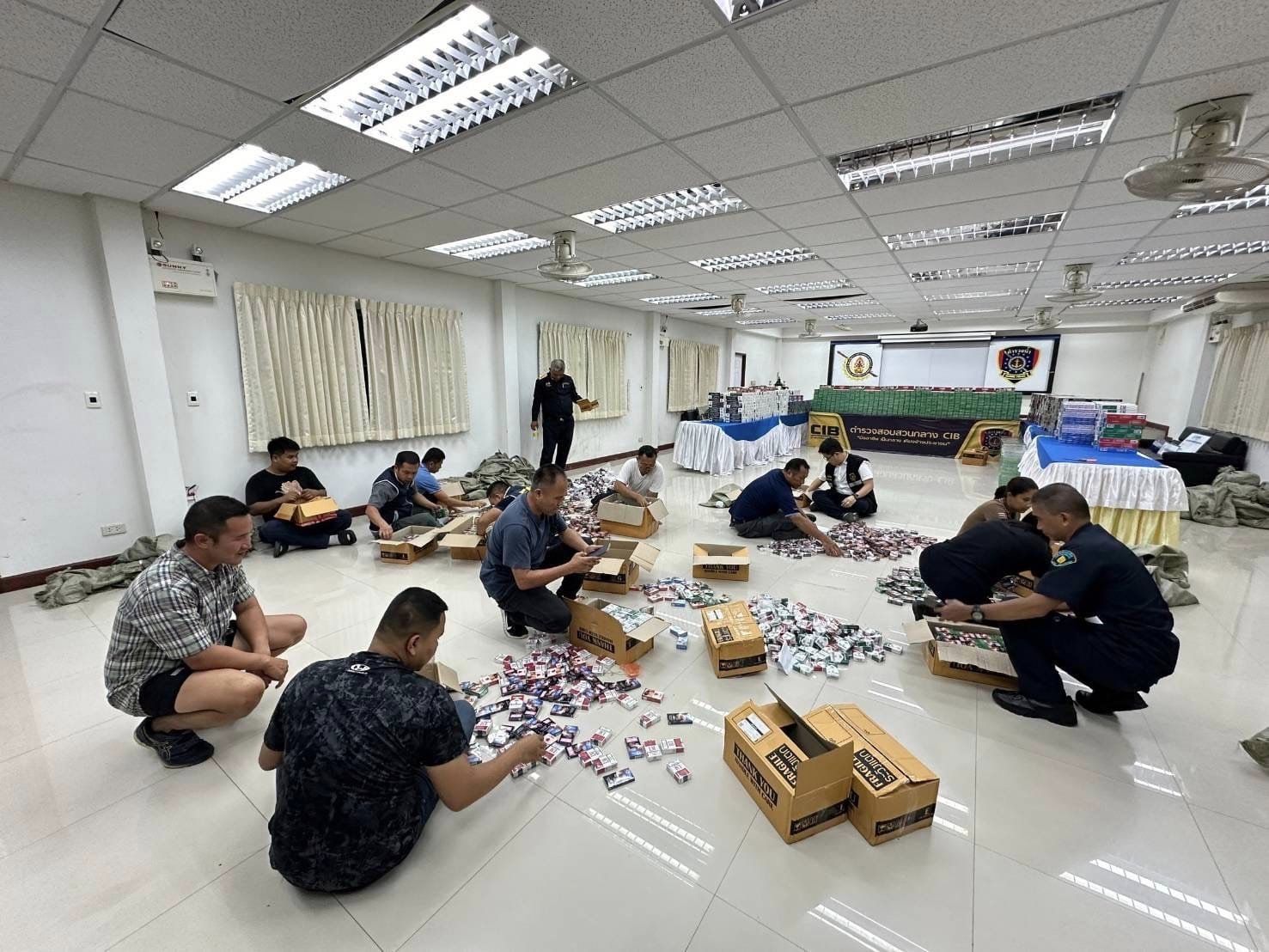 กองบัญชาการตำรวจสอบสวนกลาง (CIB) โดย กองบังคับการตำรวจน้ำ(บก.รน.) พร้อมยึดยาสูบหนีภาษี ยึดของกลางรวมจำนวน 3,090 คอตตอน/แถว หรือ 618,000 มวน ,11 กัญชาอัดแท่งขนาด หนักประมาณ 0.17-0.19 กิโลกรัม 60 กล่อง หรือ 60 แท่ง หลังบุกเข้าจับกุม ได้ที่ศูนย์กระจายสินค้าขนส่ง ต.บางทรายใหญ่ อ.เมืองมุกดาหาร จ.มุกดาหาร