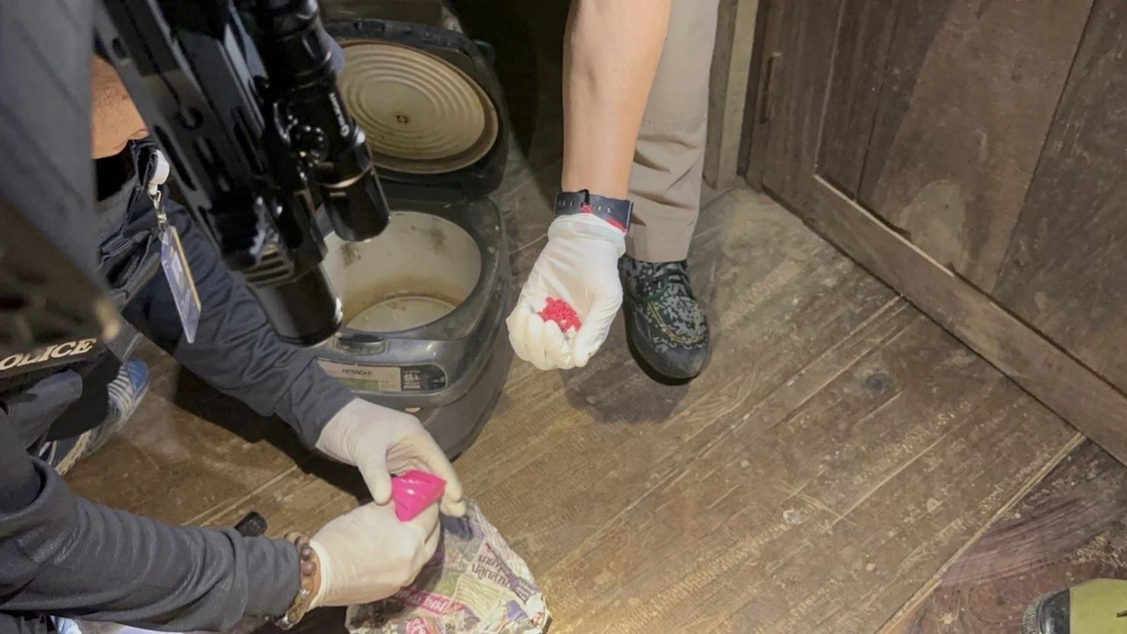 ต่อมา เจ้าหน้าที่ตำรวจชุดจับกุม จึงได้นำหมายค้นของศาลจังหวัดน่าน เข้าตรวจค้นจับกุมตัวผู้ต้องหาที่ 1 และ ผู้ต้องหาที่ 2 ตามหมายจับ ผลการตรวจค้นพบตัวผู้ต้องหาที่ 1 และ ผู้ต้องหาที่ 2 อยู่ภายในบ้านหลังดังกล่าว และยังตรวจพบยาบ้า จำนวน 84 เม็ด ซุกซ่อนอยู่ในหม้อหุงข้าวในบ้านหลังดังกล่าว