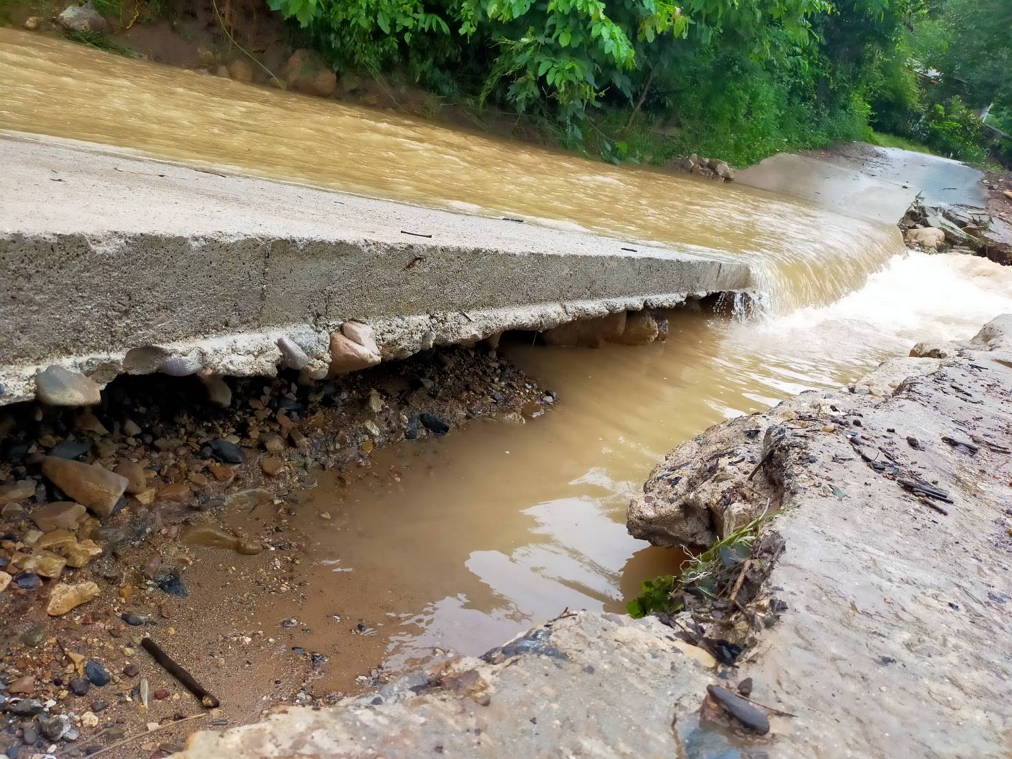 3) บ้านห้วยโป่งกาน หมู่ที่ 6 ตำบลผาบ่อง น้ำป่าไหลหลากเข้ากัดเซาะทำให้ถนนภายในหมู่บ้าน ฝายและพื้นที่การเกษตร (นาข้าว) ได้รับความเสียหาย ทำให้รถยนต์ทุกชนิดไม่สามารถสัญจรได้