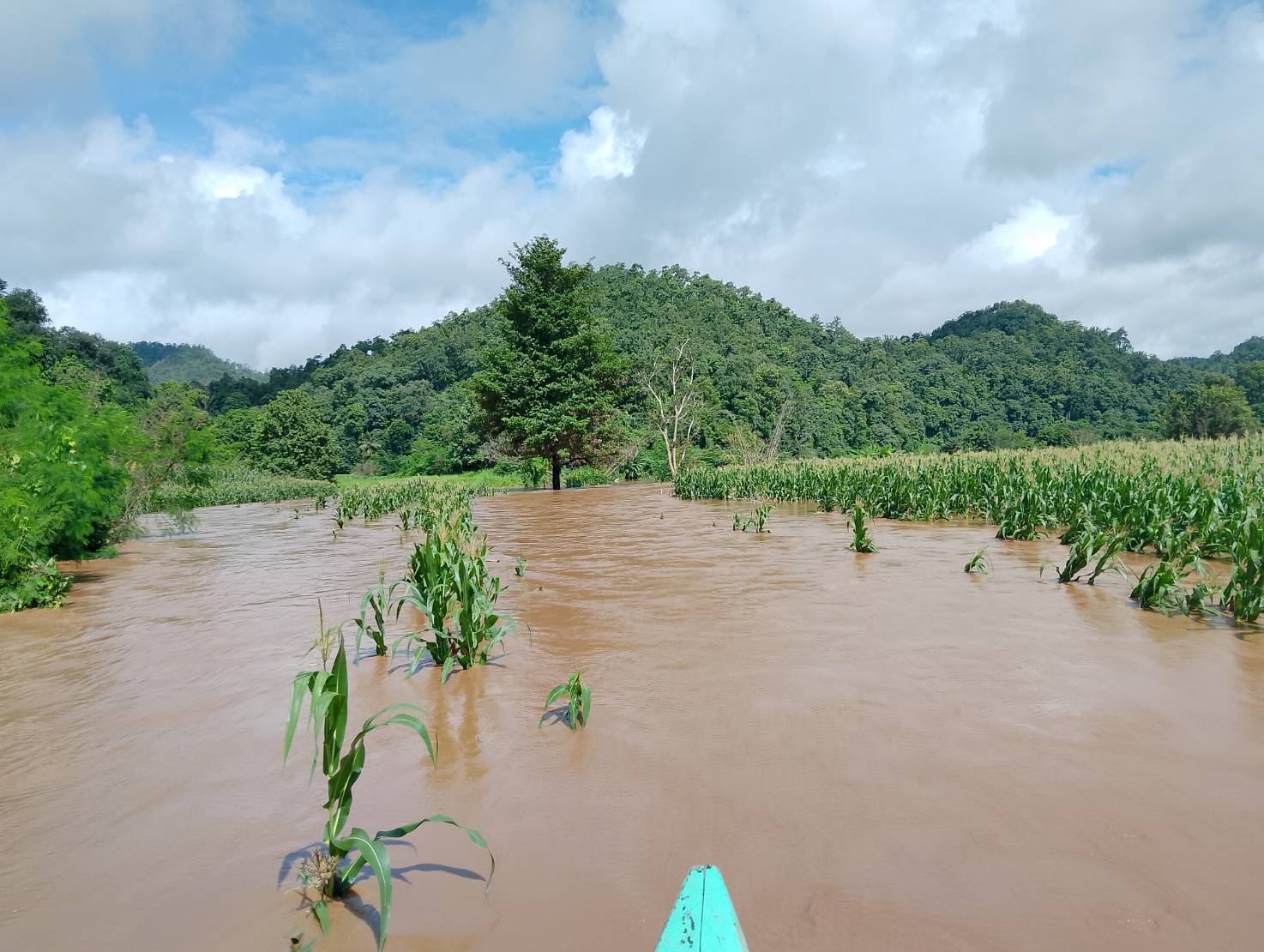 1) บ้านห้วยผา หมู่ที่ 1 น้ำเข้าท่วมพื้นที่การเกษตร (นาข้าว) ได้รับความเสียหาย