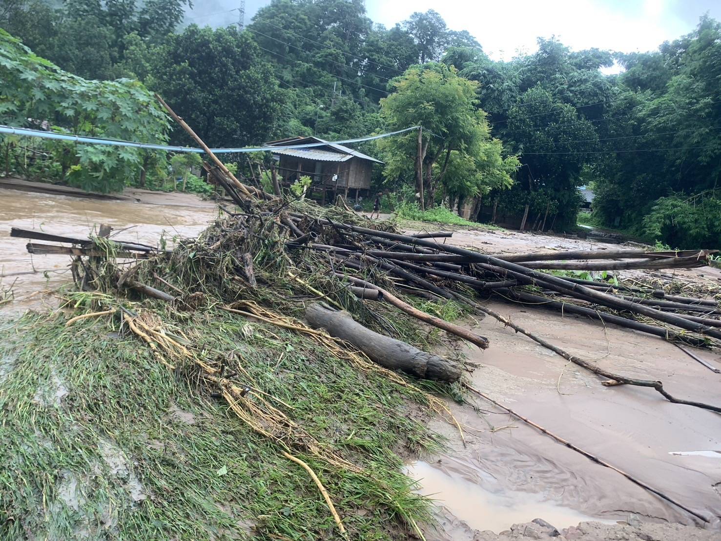 6) บ้านห้วยส้านใหม่ หมู่ที่ 7 ตำบลห้วยผา ระดับน้ำของแม่น้ำของ ได้เพิ่มสูงขึ้นอย่างต่อเนื่อง เข้าท่วมพื้นที่การเกษตร (นาข้าว) ถนนคอนกรีตเข้าหมู่บ้านถูกน้ำกัดเซาะได้รับความเสียหาย