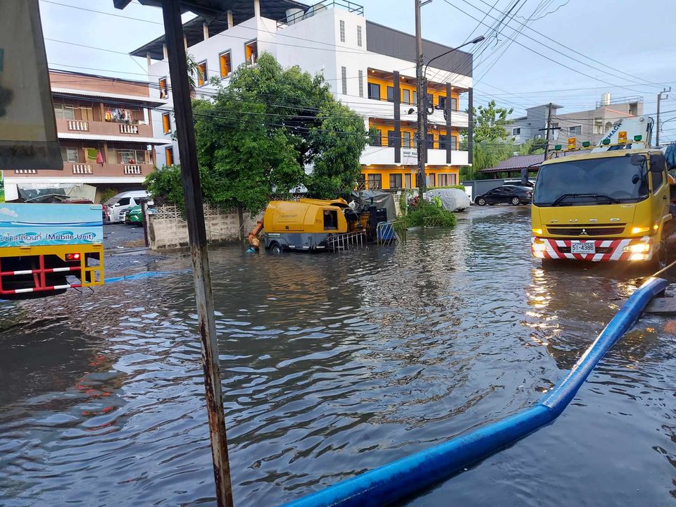 06.40 น. ในซอยพัฒนาการ 54 ช่วงสะพานข้ามคลอง ก่อนออกไปทางซอยศรีนครินทร์ 20 ยังมีน้ำท่วมขังสูง เจ้าหน้าที่กำลังเร่งเดินเครื่องสูบน้ำ