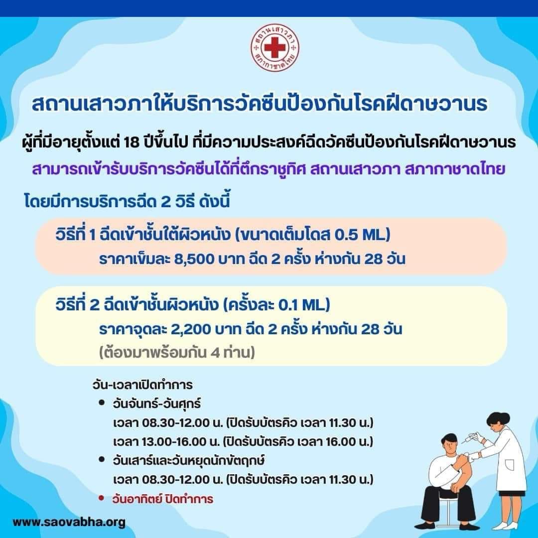 ‘สถานเสาวภา’ สภากาชาดไทย ให้บริการวัคซีนป้องกัน โรคฝีดาษวานร