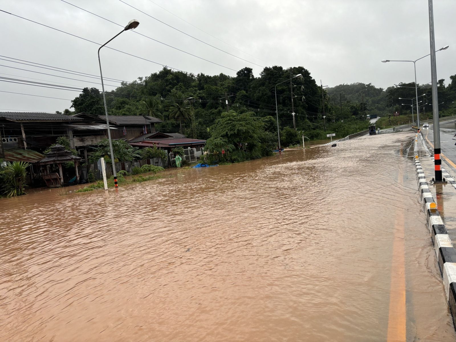 เนื่องจากฝนตกหนักตลอดทั้งคืน ทำให้ระดับน้ำแม่น้ำน่านเพิ่มสูงทำให้น้ำเอ่อล้นผิวทาง ดังนี้