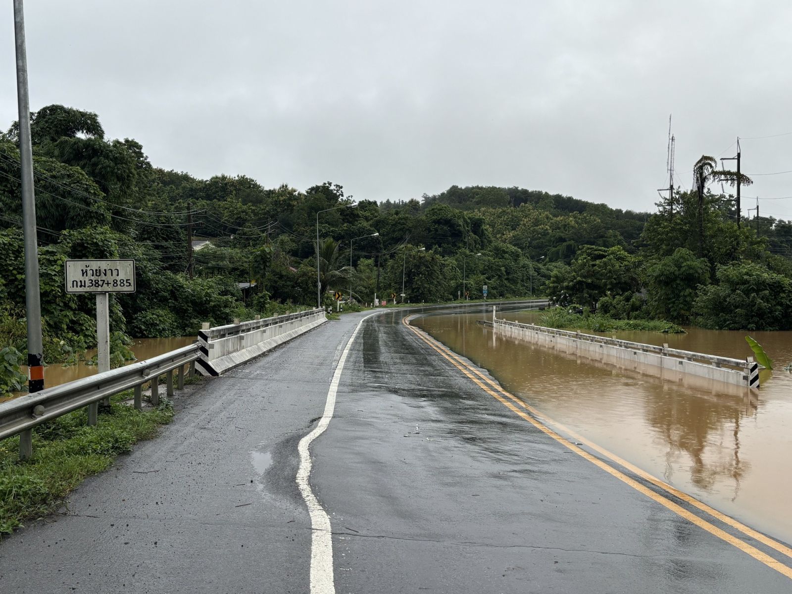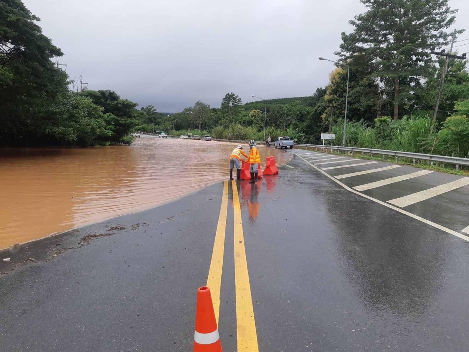 3. ทางหลวงหมายเลข 101 ตอน สี่แยกช้างเผือก - ปัว ระหว่าง กม. 392+725 - กม.392+850 พื้นที่ บ้านวังหมอ ต.บ่อ อ.เมืองน่าน จ.น่าน ระดับน้ำ 52 เซนติเมตร รถไม่สามารถผ่านได้