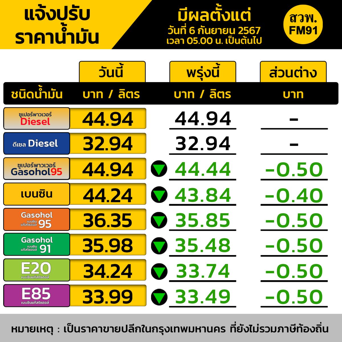 มีผลวันที่ 6 ก.ย. 67 ตั้งแต่เวลา 05:00 น. เป็นต้นไป