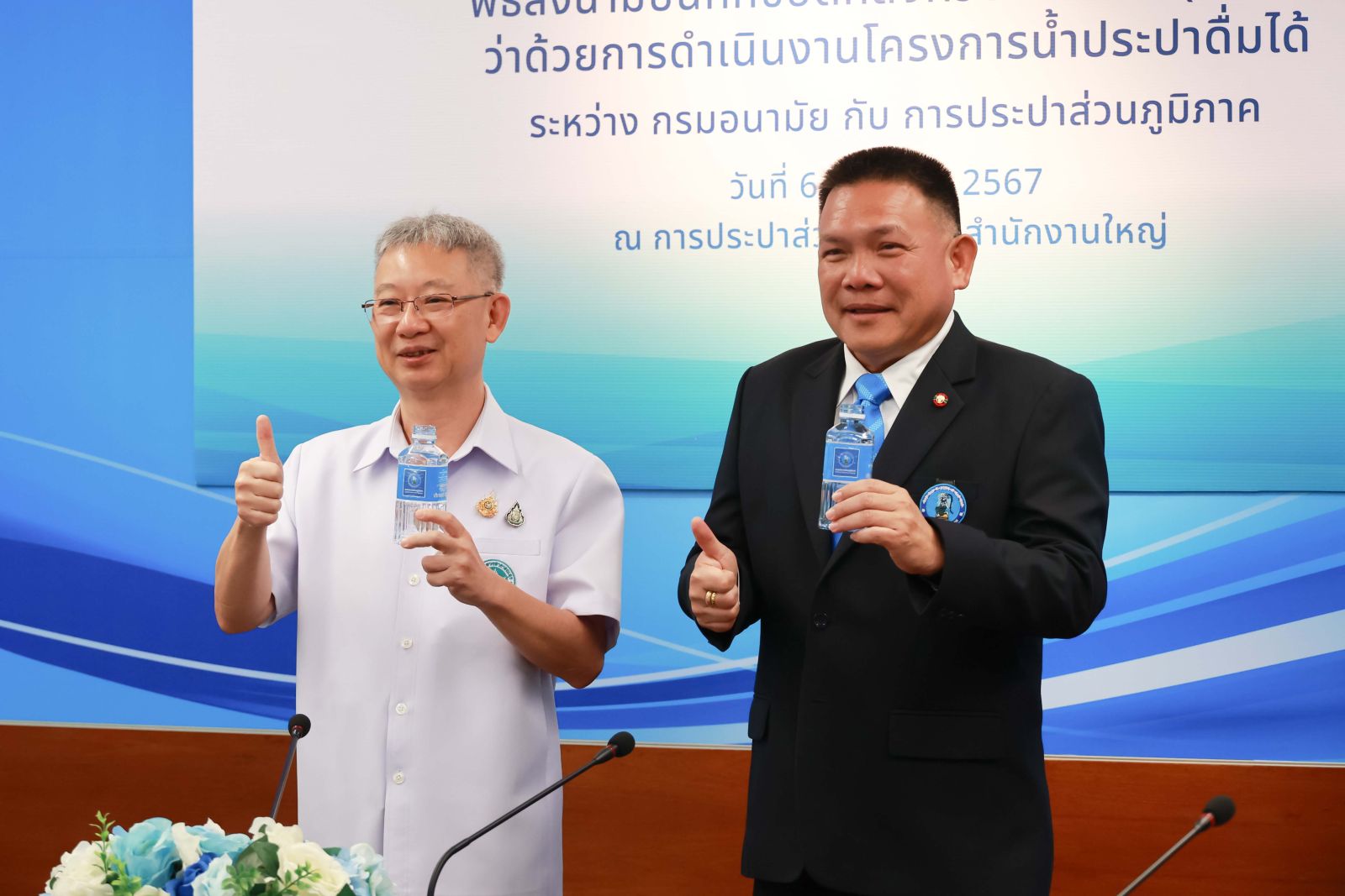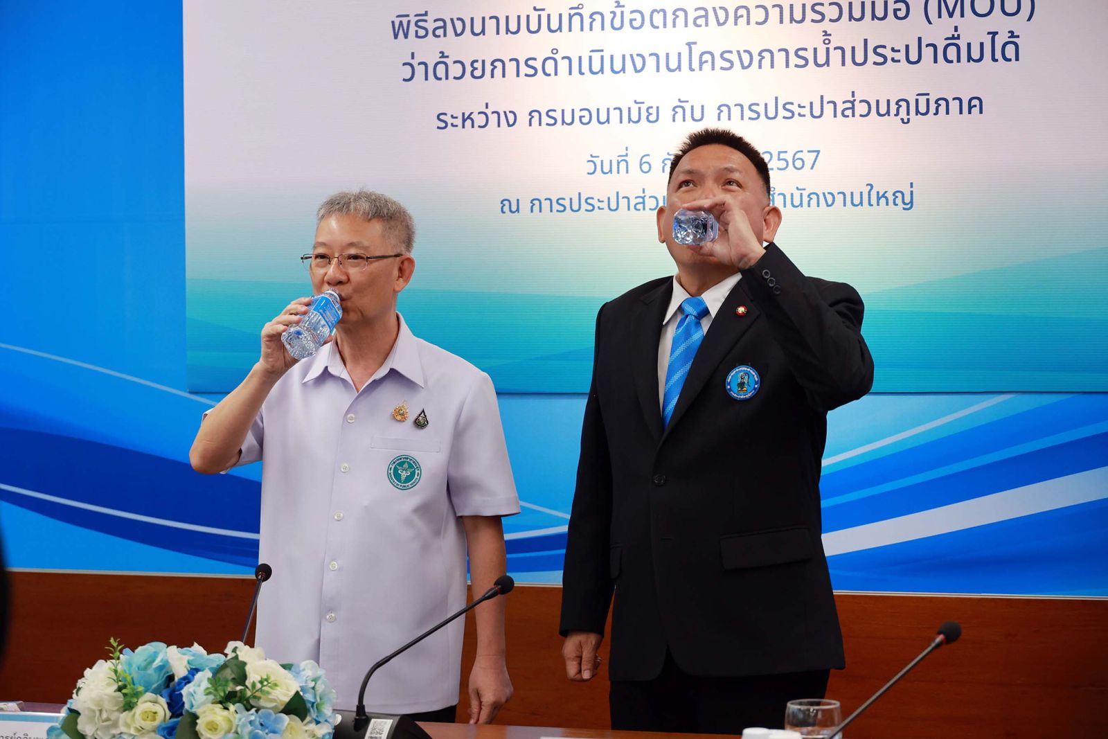 การประปาส่วนภูมิภาค (กปภ.) และกรมอนามัย ร่วมลงนามบันทึกข้อตกลงความร่วมมือว่าด้วยการดำเนินงานโครงการน้ำประปาดื่มได้ เพื่อสร้างความเชื่อมั่นและตระหนักถึงความสำคัญของน้ำประปาที่สะอาด ปลอดภัย ต่อสุขภาพของประชาชนและดื่มได้ โดยมี นายแพทย์โอภาส การย์กวินพงศ์ ปลัดกระทรวงสาธารณสุข นายพรพจน์ เพ็ญพาส อธิบดีกรมที่ดิน