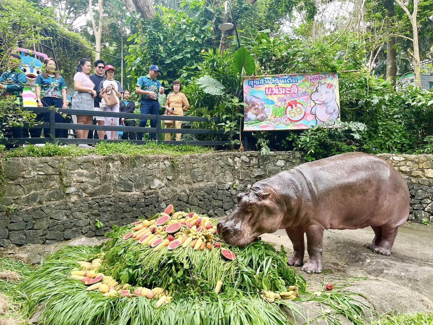 แฮปปี้เบิร์ดเดย์ “แม่มะลิ” ฮิปโปฯ สวนสัตว์เปิดเขาเขียว ฉลองวันเกิด ครบ 59 ปี มอบเค้กก้อนยักษ์ ที่มีอายุยืนที่สุดในไทย