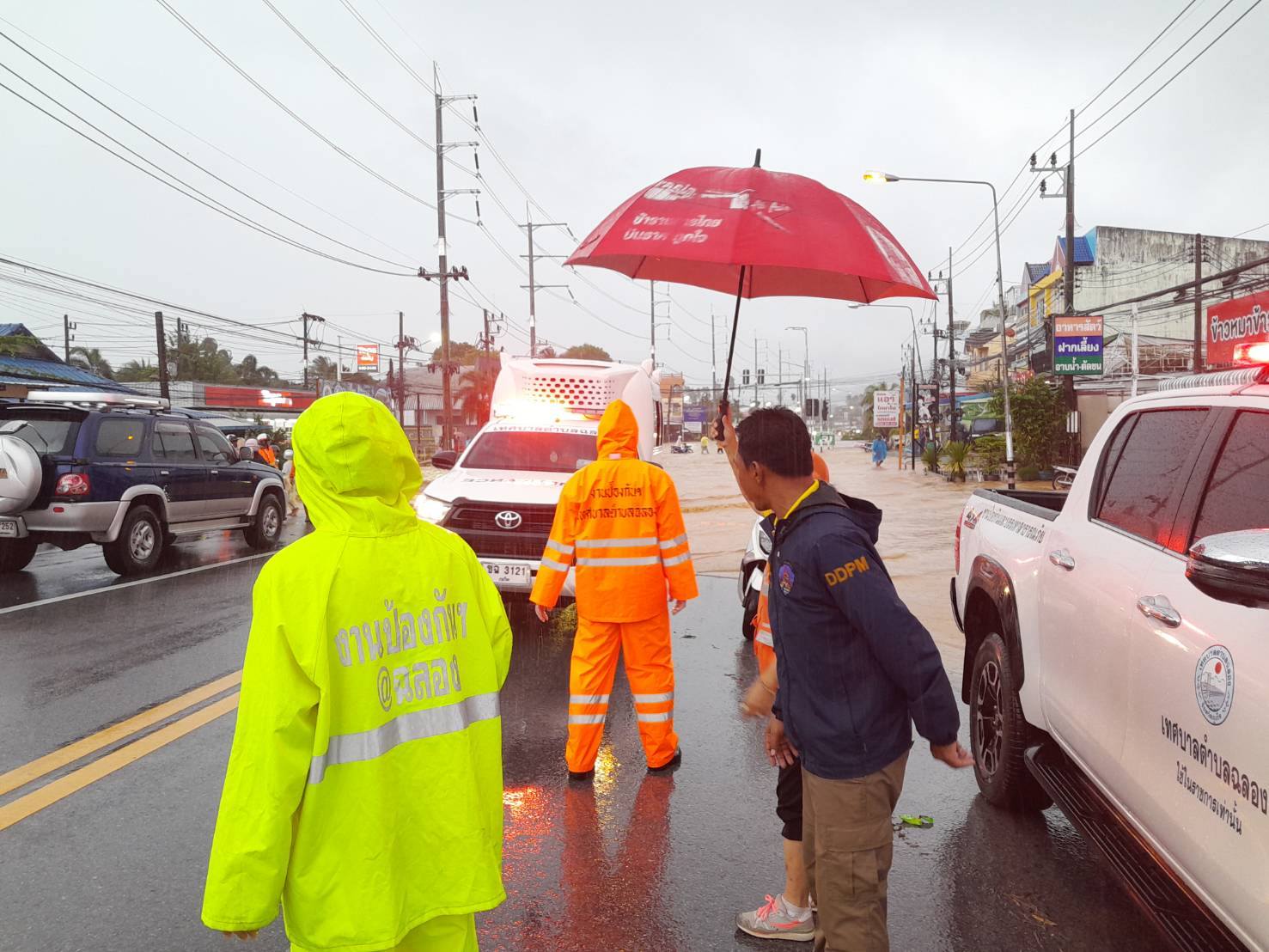 วันที่ 16 กันยายน 2567 เวลา 17.00 น. นายวรศิษย์ พุฒจีบ นายอำเภอเมืองภูเก็ต ได้รายงานสถานการณ์น้ำท่วมขัง น้ำรอระบาย ในพื้นที่เขตอำเภอเมืองภูเก็ต จากสภาวะฝนตกต่อเนื่องทั้งวัน และสั่งการให้กำลังปกครองอำเภอเมือง นำชุด ร้อย อส.เมืองภูเก็ต ชุดเคลื่อนที่เร็ว เข้าพื้นที่เพื่อช่วยเหลือ อำนวยความสะดวกให้กับประชาชน พร้อมประสานความร่วมกับหน่วยงานที่เกี่ยวข้อง เฝ้าระวัง ติดตามสถานการณ์น้ำอย่างต่อเนื่อง รวมทั้งเฝ้าระวังและติดตามสถานการณ์เหตุน้ำท่วมขัง น้ำรอระบาย ดินโคลนถล่ม และน้ำป่าไหลหลาก ในพื้นที่โดยรอบ หากพบพื้นที่ใดมีจุดเสี่ยงมากให้เร่งเคลื่อนย้าย อพยพประชาชน สัตว์เลี้ยง และสิ่งของยังพื้นที่ปลอดภัย เนื่องจากสภาวะฝนยังตกต่อเนื่อง