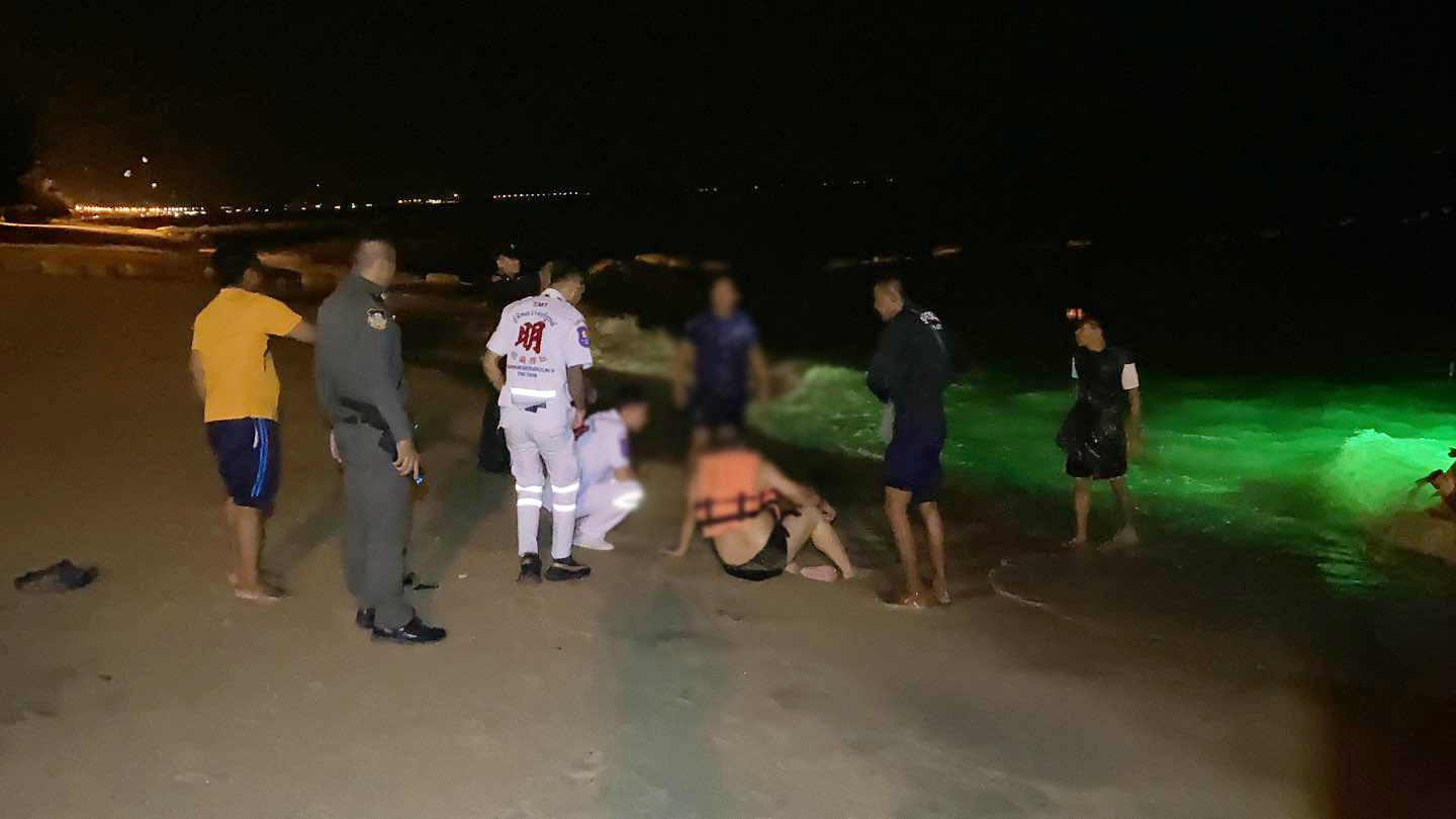 ที่เกิดเหตุ ชายหาดใกล้เคียงศูนย์กู้ภัยทางทะเล พบเจ้าหน้าที่ได้ช่วยผู้ประสบภัยขึ้นมาแล้วสองรายทราบชื่อคือ นายจอ (นามสมมุติ) อายุ 35 ปี และ นายสอ (นามสมมุติ) อายุ 45 ปี เจ้าของธุรกิจส่วนตัว อยู่ในสภาพอิดโรยลอยคอ อยู่กลางทะเลนานกว่า 4 ชั่วโมง แล้วที่กู้ภัยฯปฐมพยาบาลเบื้องต้น ไปโรงพยาบาลแต่อย่างใด ส่วนเรือนั้นยังคงอับปางจมกลางทะเล ออกตามหากระทั่งเจอก่อนกู้ซากเข้าสู่ชายฝั่ง