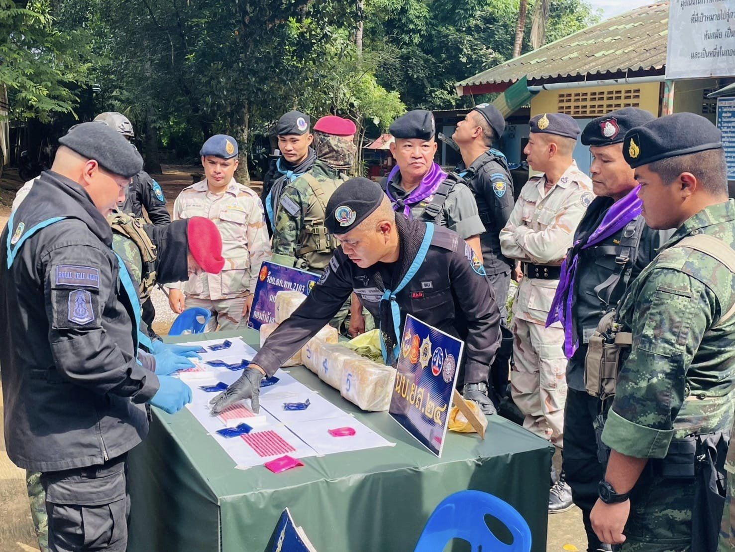 เมื่อวันที่ 19 กันยายน 2567 ที่กองร้อยชุดเฉพาะกิจทหารพราน 2103 อ.ท่าอุเทน จ.นครพนม กรมทหารพรานที่ 21 กองกำลังสุรศักดิ์มนตรี ร.อ.ธนากร นาเหล็ก ผบ.ร้อย.ฉก.ทพ.2103 พร้อมด้วยเจ้าหน้าที่ หน่วยสกัดกั้นปราบปรามยาเสพติด สารตั้งต้น เคมีภัณฑ์ ในพื้นที่จังหวัดนครพนม รวมถึง หน่วยรักษาความสงบเรียบร้อยตามลำแม่น้ำโขง (นรข.) และเจ้าหน้าที่หน่วยงานความมั่นคง แถลงการณ์สกัดกั้นตรวจยึดยาเสพติดในพื้นที่ชายแดนติดแม่น้ำโขง โดยช่วงนี้พบมีการทะลักนำเข้าในพื้นที่ชายแดนต่อเนื่อง บวกกับระดับน้ำโขงสูงปริ่มตลิ่ง ทำให้เทียบเรือง่าย ขบวนการค้ายาเสพติดจาก สปป.ลาว จึงฉวยโอกาสลักลอบมากขึ้น เนื่องจากสภาพแวดล้อมเอื้อต่อความสะดวกในการลักลอบขนส่ง อีกทั้งคิดว่าเจ้าหน้าที่ส่วนใหญ่ถอนกำลังไปช่วยเหลือผู้ประสบภัยน้ำท่วม