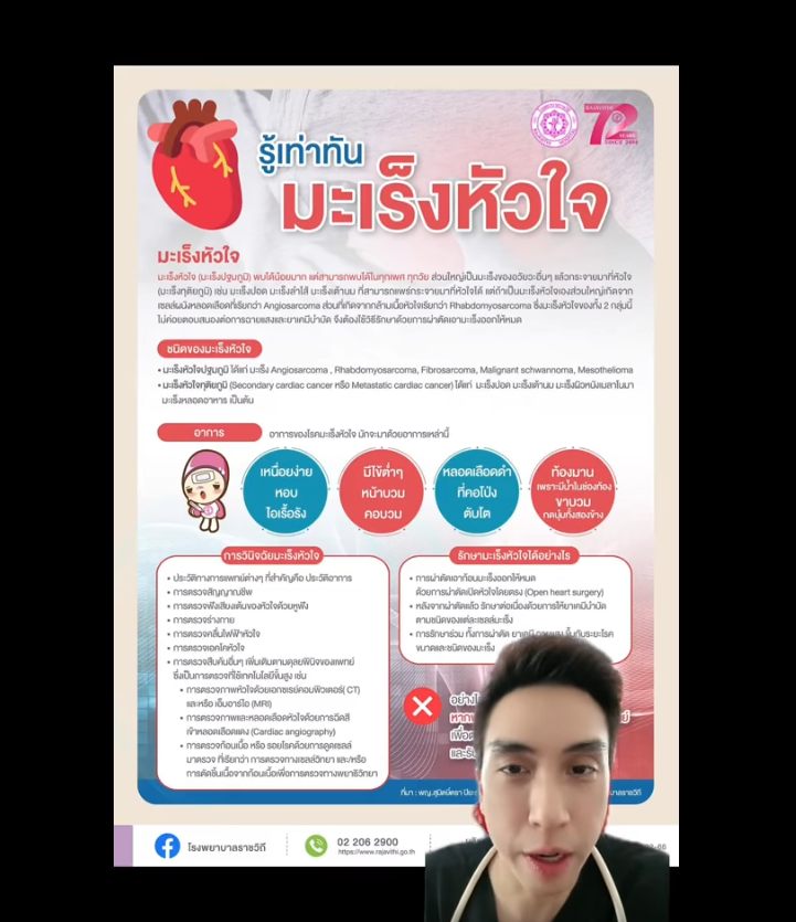 สุดท้ายนี้ หมอโอ๊คอยากให้เพื่อนๆ ตระหนักว่า แม้ Cardiac Rhabdomyosarcoma จะพบได้น้อยมาก แต่การรู้จักและเข้าใจโรคนี้ก็สำคัญ เพราะการสังเกตอาการผิดปกติและพบแพทย์แต่เนิ่นๆ อาจช่วยชีวิตได้ครับ"