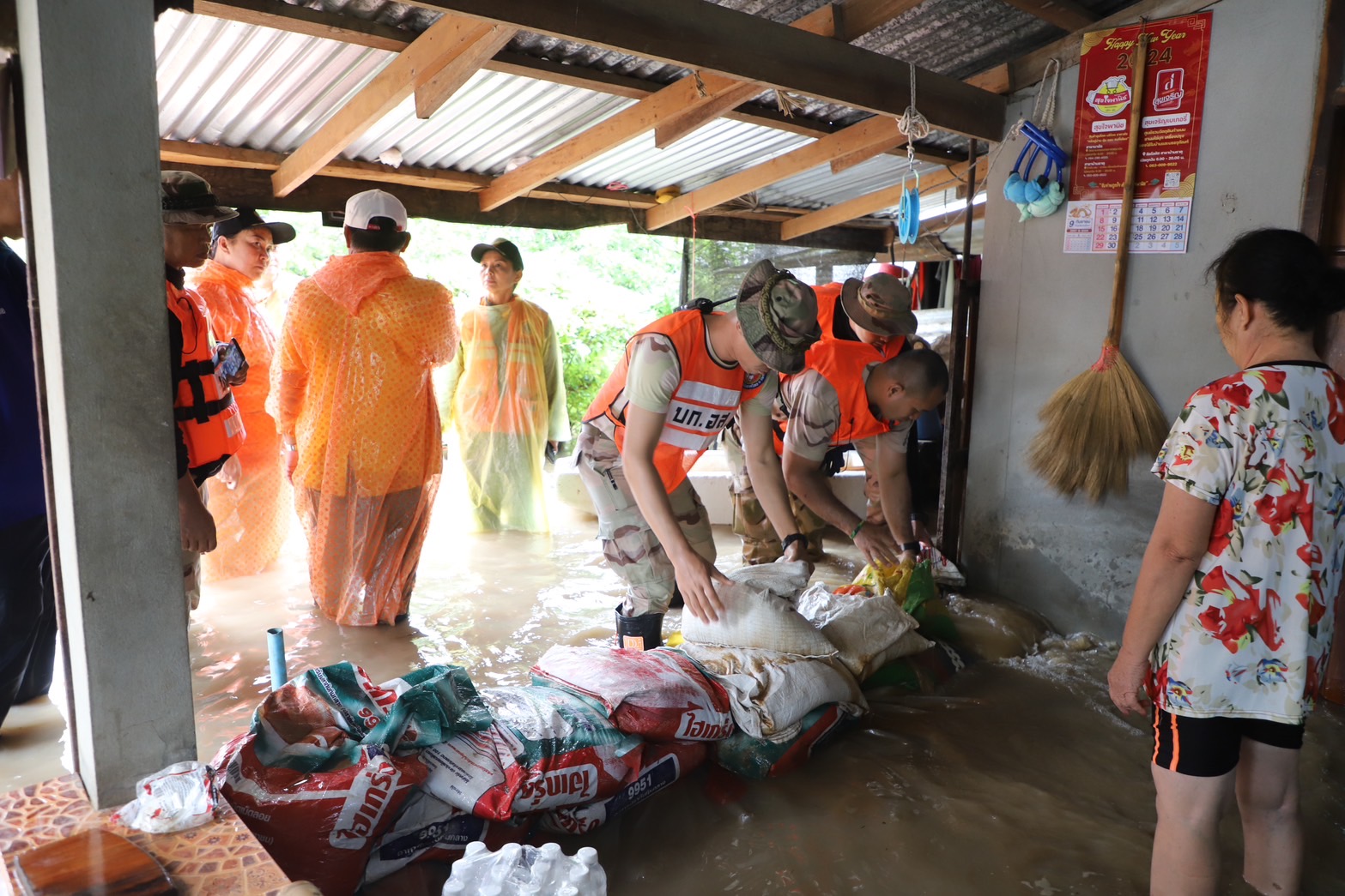 สำหรับการช่วยเหลือ อำเภอเมืองเลย องค์กรปกครองส่วนท้องถิ่น ตำรวจภูธรจังหวัดเลย สำนักงานพัฒนาสังคมและความมั่นคงของมนุษย์จังหวัดเลย มทบ.28 นพค.23 และหน่วยงานที่เกี่ยวข้อง ได้ดำเนินการดังนี้ 1) ประกอบอารเลี้ยงผู้ประสบภัยในพื้นที พร้อมจัดเจ้าหน้าที่สาธารณสุขปฐมพยาบาลในขั้นต้นพร้อมด้วยยารักษาโรคน้ำกัดเท้า 2) ได้เคลื่อนย้ายกลุ่มเปราะบาง ผู้ป่วยติดเตียง ผู้สูงอายุ ไปยังสถานที่ปลอดภัย ศูนย์พักพิงชั่วคราว ที่วัดศรีชมชื่น 3) มีการจัดการจราจร รักษาความปลอดภัยในชีวิตและทรัพย์สินประชาชน 4) จัดรถรับส่ง เพื่อบริการประชาชนเข้า - ออก พื้นที่ และมีความจำเป็นจะต้องไปทำภารกิจนอกพื้นที่ 5) จัดเจ้าหน้าที่บริการ อำนวยความสะดวก พร้อมเรือท้องแบน และรถยกสูง (เคลื่อนย้ายผู้ประสบภัย) 6) ตัดระบบไฟฟ้า เพื่อความปลอดภัยของประชาชน 7) จัดเจ้าหน้าที่ให้ความช่วยเหลือประชาชนผู้ประสบเหตุ และประชาสัมพันธ์สร้างความเข้าใจให้กับประชาชนได้ทราบข้อเท็จจริงถึงสถานการณ์ที่เกิดขึ้น และจะต้องสำรวจความเสียหายเพื่อให้การช่วยเหลือโดยเร่งด่วนต่อไป และ 8) มอบถุงยังชีพพระราชทานของมูลนิธิราชประชานุเคราะห์ ในพระบรมราชูปถัมภ์ ในวันนี้ (23 กันยายน 2567) เวลา 18.00 น. ณ วัดศรีชมชื่น ตำบลนาอ้อ อำเภอเมืองเลย จังหวัดเลย
