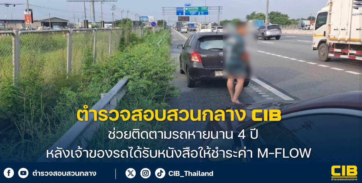 ตำรวจสอบสวนกลาง (CIB) ช่วยติดตามรถหายนาน 4 ปี หลังเจ้าของรถได้รับหนังสือให้ชำระค่า M-FLOW