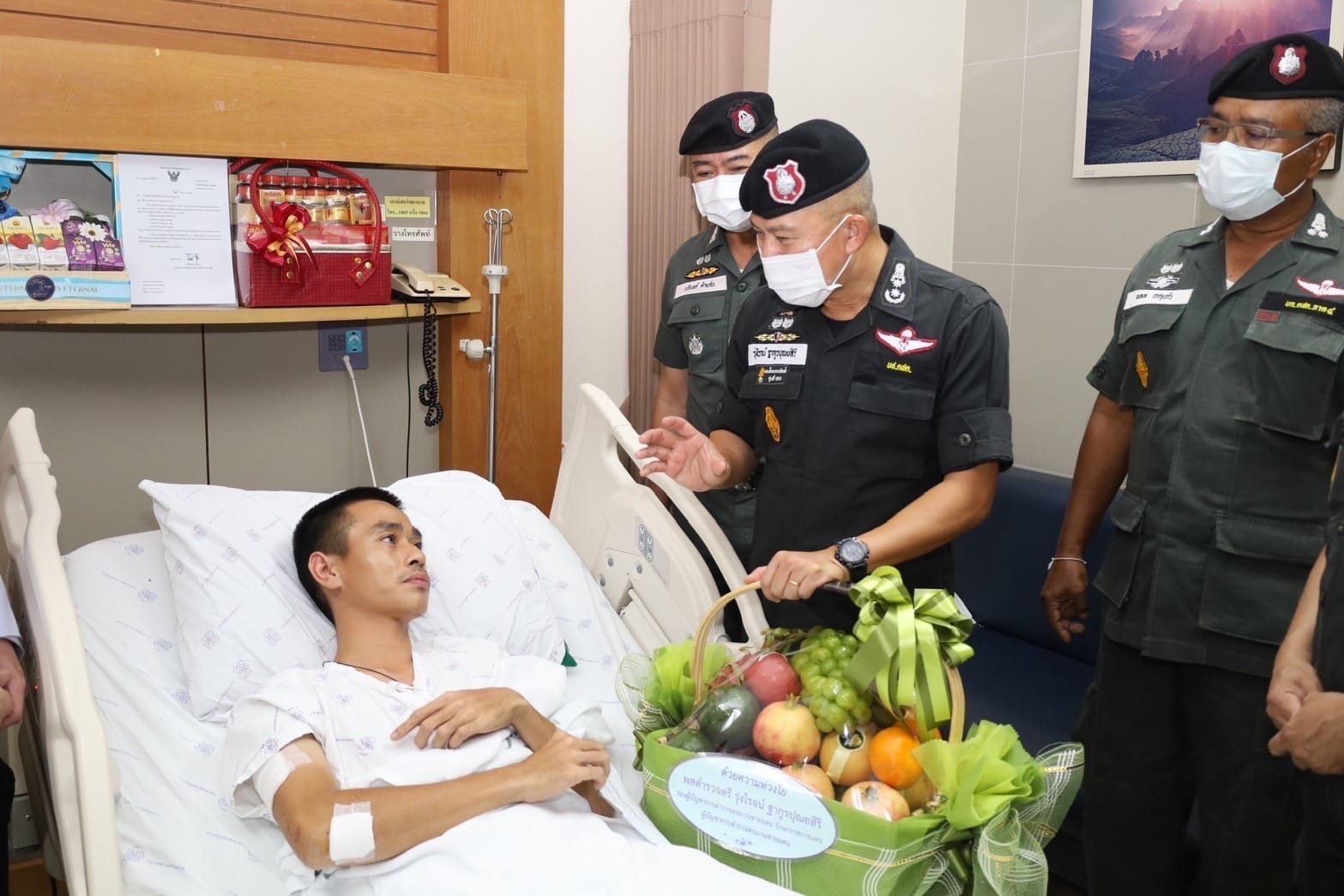 4.ส.ต.ท.ศุภวิชญ์ ป้องแก้ว ผบ.หมู่ กก.ตชด.41 ถูกสะเก็ดระเบิดบริเวณศีรษะด้านขวา เย็บแผล 3 เข็ม บริเวณแผลแห้งดี รู้สึกตัวดี เดินช่วยเหลือตัวเองได้”