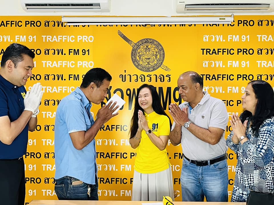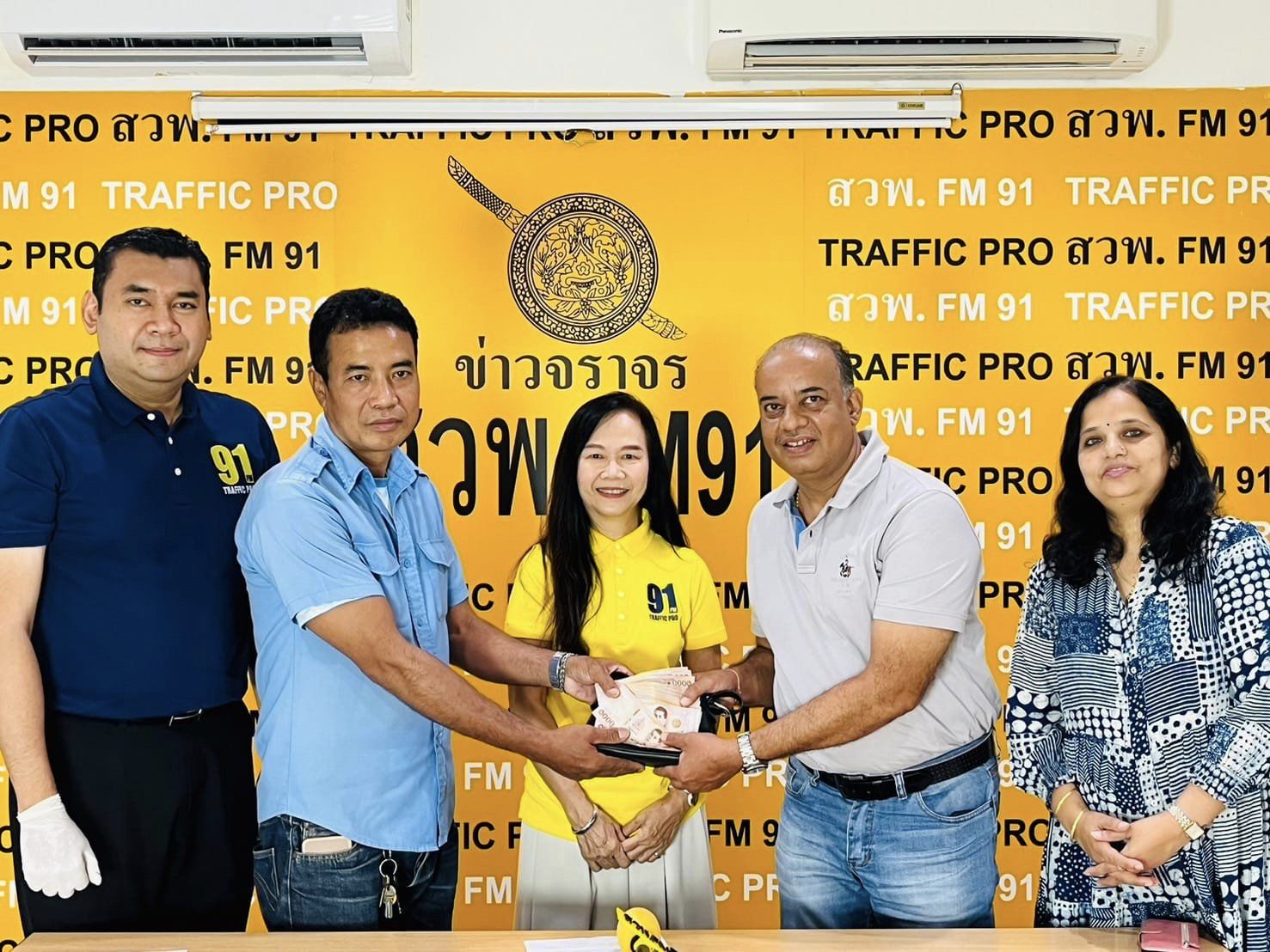 วันที่ 7 ตุลาคม 2567 ที่สถานีวิทยุพิทักษ์สันติราษฎร์ สวพ.FM91 กองตำรวจสื่อสาร สำนักงานตำรวจแห่งชาติ ถนนพหลโยธิน แขวงลาดยาว เขตจตุจักร กทม. ดร.ไจตนย์ ศรีวังพล รองกรรมการผู้จัดการ บริษัทวิไลเซ็นเตอร์แอนด์ซันส์จำกัด ผู้ร่วมดำเนินงานสถานีวิทยุ สวพ.FM91 คุณสกล ถาวรกาญจน์ ประธานเจ้าหน้าที่บริหาร ฝ่ายสื่อสารองค์กร สถานีวิทยุ สวพ.FM91 ร่วมเป็นสักขีพยาน ส่งมอบเงินสดพร้อมทรัพย์สิน เกือบ 6 หมื่นบาท