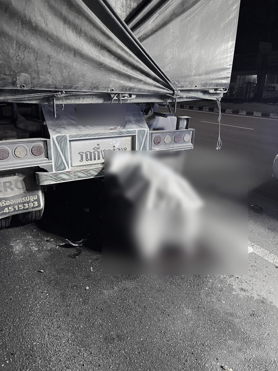 หนุ่มวัย 28 ปีขี่รถจักรยานยนต์ ชนกับรถพ่วง เสียชีวิตกลางถนนสุวรรณศร จ.นครนายก