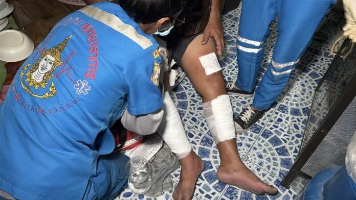 แม่ของผู้บาดเจ็บ อายุ 65 ปี กล่าวว่า ตอนเกิดเหตุตนอยู่ข้างบนชั้น 2 ได้ยินเสียงลูกชายร้องจึงลงมาดู ส่วนลูกชายเพิ่งกลับมาจากงานวัด กลับมาถึงก็อาบน้ำ ผู้ก่อเหตุก็บุกเข้ามาดักรอหน้าห้องน้ำ พอลูกชายออกมาก็สาดใส่เลย