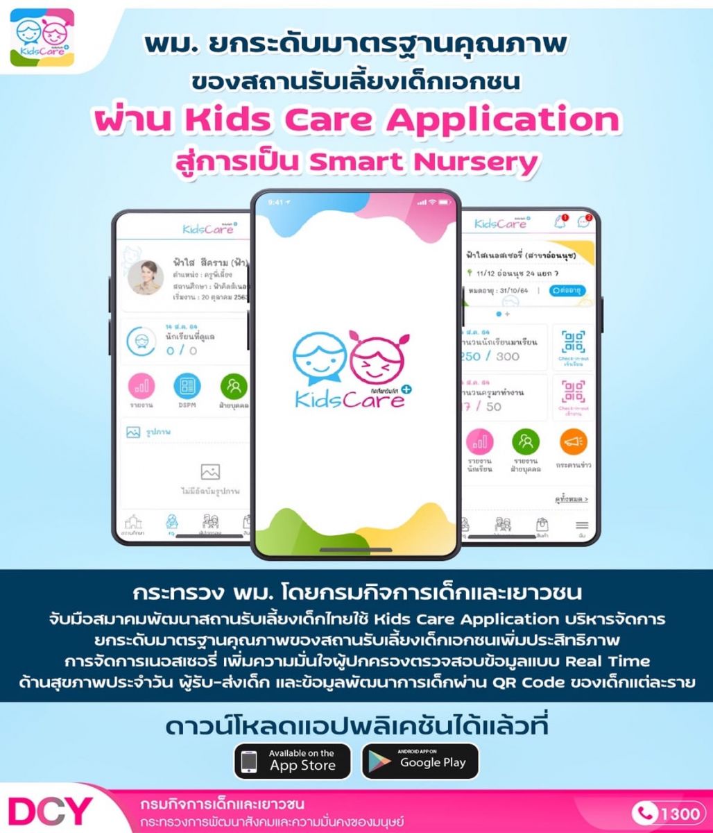 สำนักงานปลัดกระทรวงการพัฒนาสังคมและความมั่นคงของมนุษย์ร่วมกับกรมกิจการเด็กและเยาวชน ได้กำหนดการประชุมเชิงปฏิบัติการเพื่อยกระดับมาตรฐานคุณภาพของสถานรับเลี้ยงเด็กเอกชนกว่า 1,284 แห่ง ทั่วประเทศ ซึ่งมีเด็กอายุตั้งแต่แรกเกิด – 6 ปี ใช้บริการกว่า 16,100 คน ผ่านการส่งเสริมให้สถานประกอบการดังกล่าวเป็นไปตามมาตรฐานเด็กปฐมวัยแห่งชาติ ในระหว่างวันที่ 14-16 มีนาคม 2565 ให้แก่ พัฒนาสังคมและความมั่นคงของมนุษย์จังหวัด รวมถึงผู้ปฏิบัติงานในส่วนภูมิภาคทั้ง 77 จังหวัด จำนวน 150 คน ร่วมขับเคลื่อนการยกระดับ ความปลอดภัยในสถานรับเลี้ยงเด็กเอกชนที่กำหนดไว้ในมาตรฐานเด็กปฐมวัยแห่งชาติสู่การปฏิบัติอย่างแท้จริง และได้มีความร่วมมือกับสมาคมพัฒนาสถานรับเลี้ยงเด็กไทยในการนำ Kids Care Application มาใช้ในการบริหารจัดการกิจกรรมภายในสถานรับเลี้ยงเด็ก ทั้งด้านการบริหารบุคคล ด้านการประเมินคุณภาพตนเอง (SAR) ด้านการพัฒนาเด็กโดยเครื่องมือ DSPM และด้านสุขภาพ (4D) ได้แก่ ด้านโภชนาการและการเจริญเติบโต (Diet) ด้านพัฒนาการเด็กและการเล่น (Development and Play) ด้านทันตสุขภาพ (Dental) และด้านการป้องกันโรค (Disease) ด้านการบริการข้อมูลข่าวสาร ด้านทะเบียนผู้ใช้บริการ และที่สำคัญ Application ดังกล่าวจะทำให้พ่อแม่ ผู้ปกครอง มีความมั่นใจต่อคุณภาพการให้บริการ โดยสามารถตรวจสอบข้อมูลแบบ Real Time ด้านสุขภาพประจำวัน ผู้รับ-ส่งเด็ก และข้อมูลพัฒนาการเด็กผ่าน QR Code ของเด็กแต่ละราย