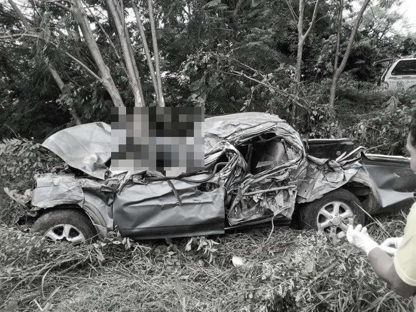 คุณลุงวัย 61 ปีขับรถกระบะเสียหลักพุ่งชนต้นไม้ข้าง ริมถนนสายเชียงยืน - คำใหญ่ เสียชีวิตในซากรถ จ.มหาสารคาม