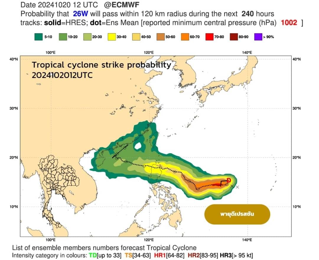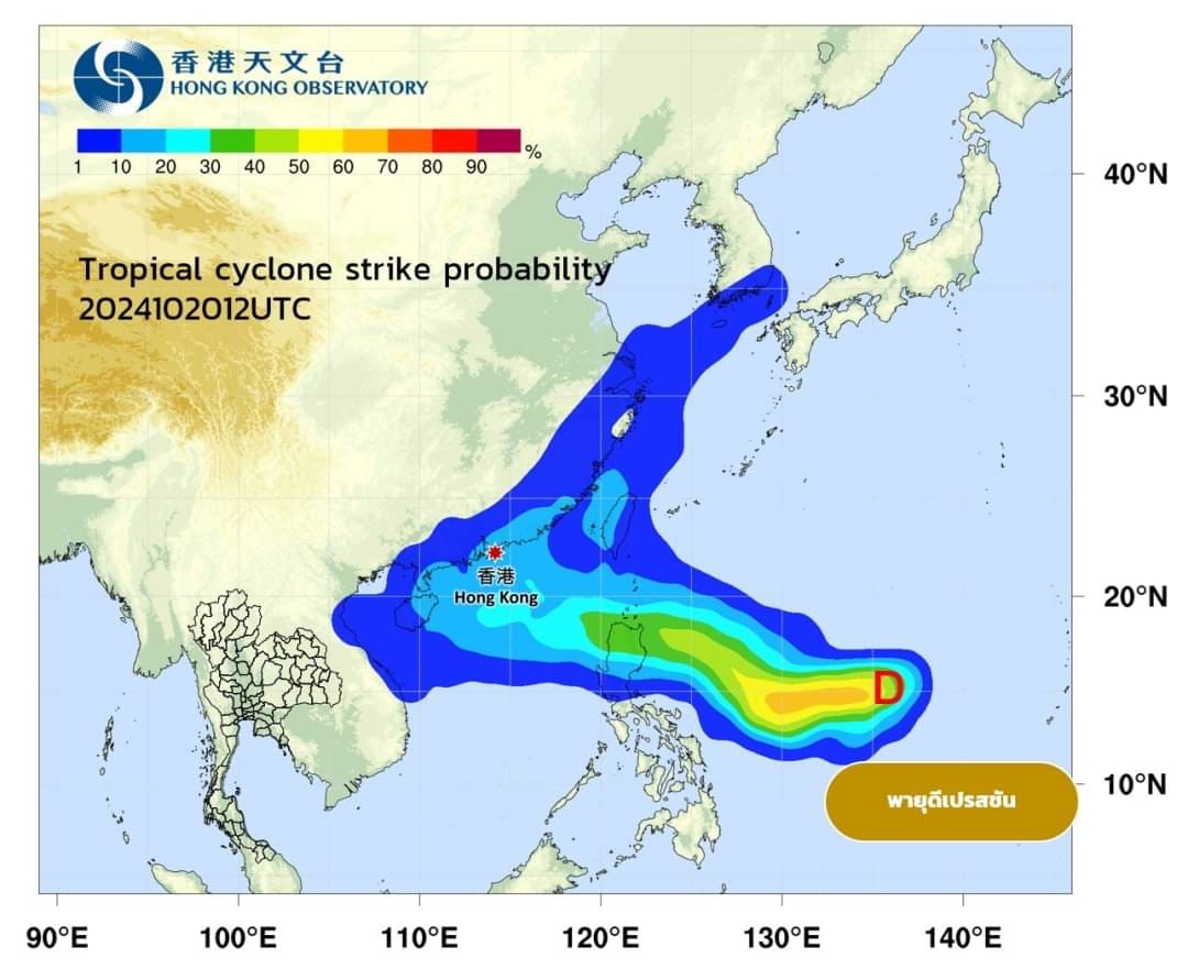 พายุดีเปรสชันในมหสมุทรแปซิฟิกตะวันตก กำลังเคลื่อนตัวทางตะวันตก พายุนี้ยังอยู่ห่างไกลจากประเทศไทยมาก มีแนวโน้มจะทวีกำลังแรงเป็นพายุโซนร้อนได้ และเคลื่อนตัวเข้าใกล้เกาะลูซอล ประเทศฟิลิปปินส์ ในช่วงวันที่ 24- 25 ต.ค.67 ก่อนที่จะเคลื่อนตัวทางทิศตะวันตกเฉียงเหนือ ลงสู่ทะเลจีนใต้ตอนลน และเคลื่อนไปทางตะวันออกของประเทศจึงคาดว่าพายุนี้จะไม่มีผลกระทบกับประเทศไทย แต่ยังต้องติดตาม ข้อมูลอาจจะมีการเปลี่ยนแปลงได้