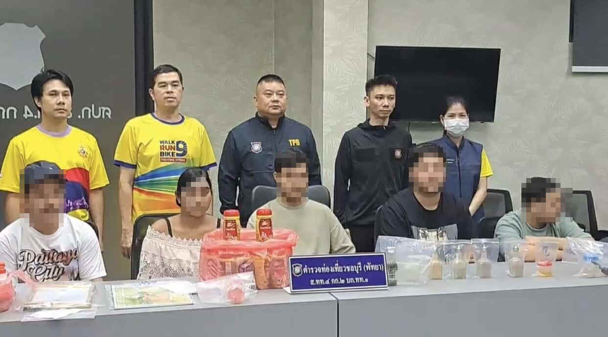 22 ตุลาคม 2567 - เวลา 22.49 น. มีรายงานว่า ตำรวจท่องเที่ยวพัทยา ร่วมกับ สำนักงานสาธารณสุขจังหวัดชลบุรี กลุ่มงานคุ้มครองผู้บริโภคและเภสัชสาธารณสุข ร่วมบูรณาการเข้าตรวจสอบ ร้านค้าจำหน่ายสมุนไพรแห่งหนึ่ง ในพื้นที่ หมู่ที่ 10 ต.หนองปรือ อ.บางละมุง จ.ชลบุรี โดยสามารถจับกุมผู้ต้องหารวม 5 ราย เป็นชาย 4 รายชาวสัญชาติปากีสถาน และ หญิง 1 ราย ชาวสัญชาติเมียนมา