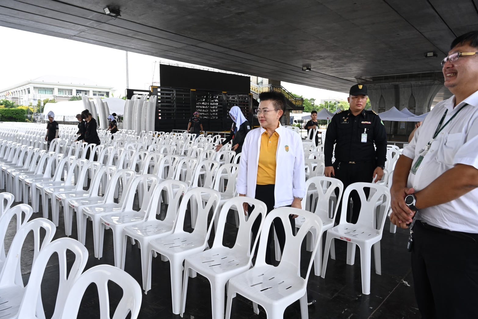 ปลัดฯ วันทนีย์ กล่าวเสริมว่า กรุงเทพมหานคร ได้ติดตั้งจอ LED พร้อมเครื่องขยายเสียง สำหรับถ่ายทอดสดงานพระราชพิธี จำนวน 14 จุด รวม 18 จอ นอกจากนี้ยังอำนวยความสะดวกให้กับผู้ใช้วีลแชร์โดยทำทางลาดรองรับประมาณ 40 ที่นั่ง ณ จุดชมสวนสันติชัยปราการ สำหรับประชาชนที่ต้องการมาชมขบวนเรือตามจุดต่าง ๆ ที่ได้จัดเตรียมไว้ สามารถเข้าชมได้ฟรีไม่มีค่าใช้จ่าย ขอให้มาจับจองที่นั่งเร็วสักหน่อยเพราะที่นั่งมีจำกัด และมาโดยรถโดยสารสาธารณะเนื่องจากที่จอดรถอาจไม่เพียงพอ นอกจากนี้ขอให้เตรียมอุปกรณ์สำหรับรับมืออากาศร้อนหรือฝนตก ก็จะทำให้การรับชมเป็นไปด้วยความราบรื่น