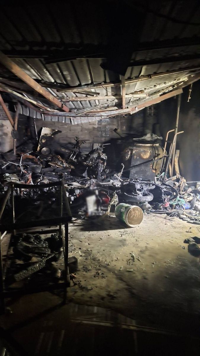 ลักษณะที่เกิดเหตุเป็นบ้านไม้ชั้นเดียว ใช้เป็นที่พักอาศัย ต้นเพลิงเกิดขึ้นภายในโรงจอดรถ เพลิงลุกไหม้เสียหายโรงจอดรถ และรถจักรยานยนต์ จำนวน 5 คัน พื้นที่เพลิงไหม้เสียหายโดยประมาณ 20 ตารางวา รถดับเพลิงใช้น้ำทำการดับเพลิงสงบ