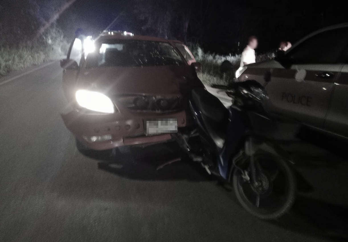 รถนั่งส่วนบุคคลชนท้ายรถจักรยานยนต์ หญิงวัย 52 ปีร่างกระเด็นตกข้างทางเสียชีวิต ริมถนนสายบ้านหนองเสือ จ.ฉะเชิงเทรา