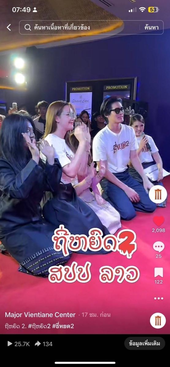 เมื่อวันที่ 2 พฤศจิกายนที่ผ่านมา ทีมนักแสดง “ธี่หยด 2” นำโดย จูเนียร์ กาจบัณฑิต ใจดี, พร้อมด้วย เดนิส เจลีลชา คัปปุน และ ณัฐชา นีน่า เจสซิกา พาโดวัน บินลัดฟ้าไปขอบคุณแฟน ๆ ภาพยนตร์ชาวลาว ถึงโรงภาพยนตร์เมเจอร์ แพลตินั่ม เวียงจันทร์ เซ็นเตอร์ และ โรงภาพยนตร์ เมเจอร์ แพลตินั่ม ไอเต็ก มอลล์