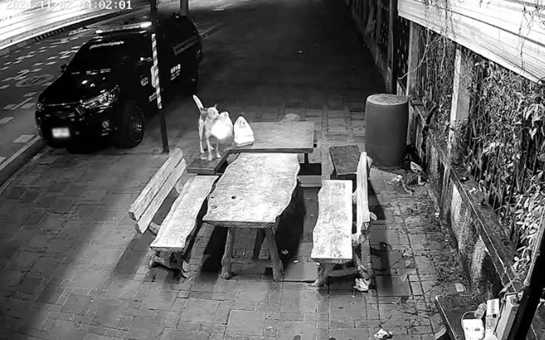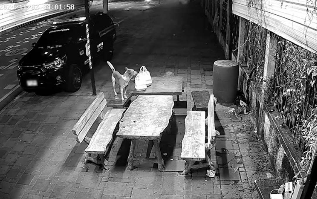 "อย่าไว้ใจทาง อย่าวางใจ.." น้องหมาจรจัด ปีนโต๊ะม้าหิน ขโมยข้าวกู้ภัย คาบไปทั้งถุงหน้าตาเฉย จ.ชลบุรี