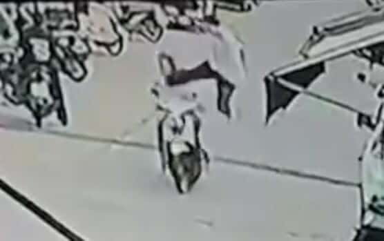 พลเมืองดีตาไว! เจอโจรฉกตับไก่ย่าง กำลังขี่จยย. หนี ดักซุ่มกระโดดถีบ รถคว่ำกลางตลาด จ.ชลบุรี
