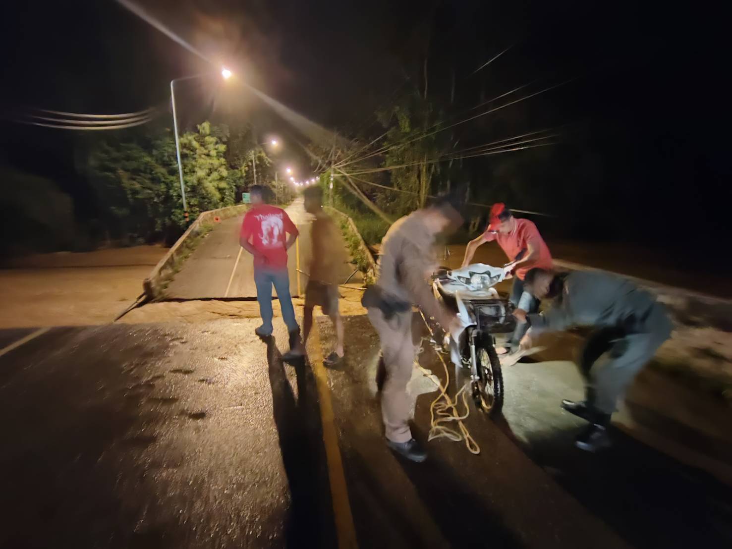 ตามที่ได้เกิดฝนตกหนักในพื้นที่อำเภอเบตง จังหวัดยะลา เมื่อวันที่ 11 พ.ย. 2567 ส่งผลให้ เวลา 00.00 น. ของวันที่ 12 พ.ย. 2567 เกิดเหตุน้ำไหลหลากกัดเซาะใต้สะพานระหว่างหมู่ที่ 4 และหมู่ที่ 6 ต.ยะรม อ.เบตง จ.ยะลา ทำให้เสาล้มและสะพานขาด มีรถจักรยานยนต์ตกน้ำ 2 คันมีผู้ได้รับบาดเจ็บเล็กน้อย 2 ราย