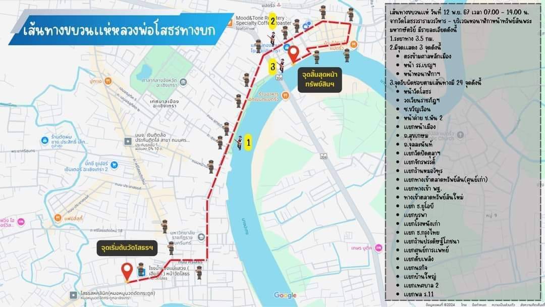 วันที่ 14 พฤศจิกายน 2567 พิธีแห่หลวงพ่อโสธรทางน้ำไปอำเภอบางปะกง