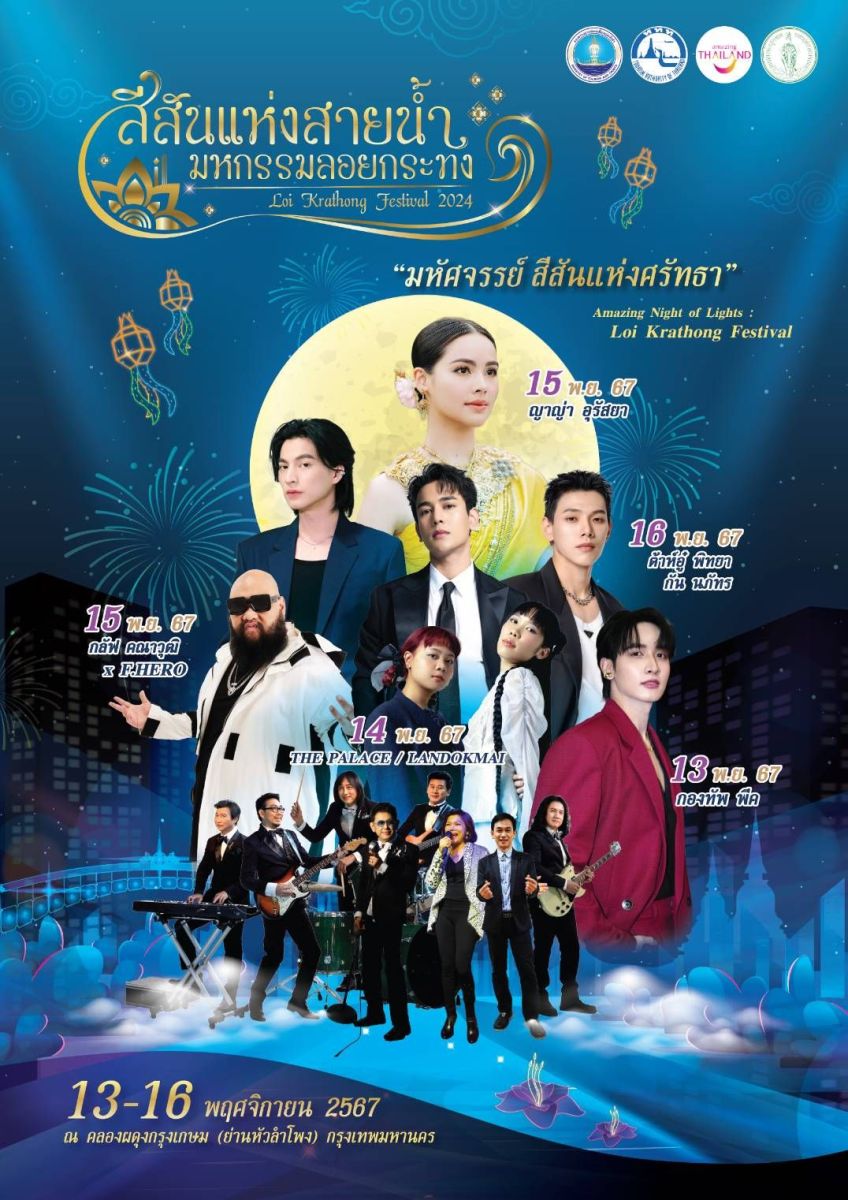 8. พิธีเปิดงานและขบวนแห่นางนพมาศทางน้ำสุดยิ่งใหญ่ จากพระราชพิธีจองเปรียง สู่การลอยกระทง นำขบวนโดย ญาญ่า อุรัสยา ในวันที่ 15 พ.ย. 67
