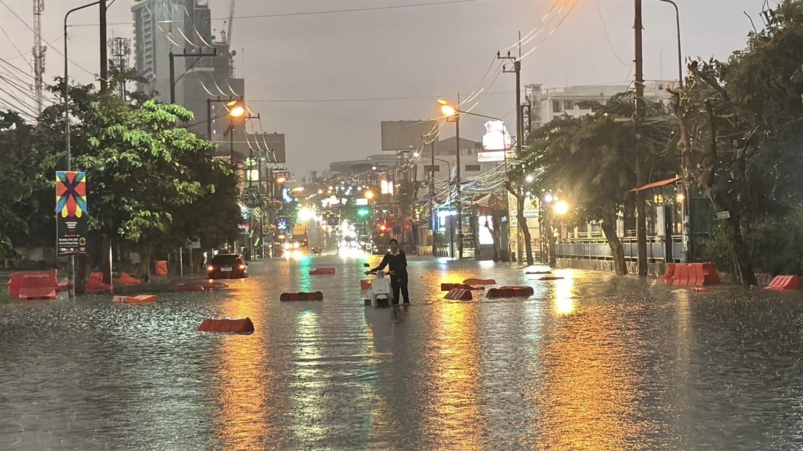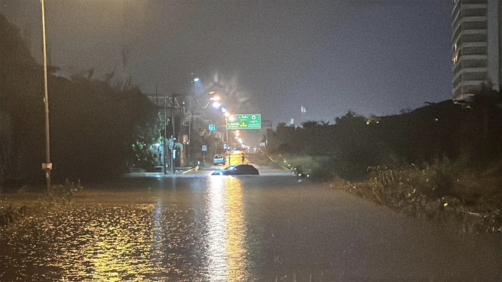 ฝนถล่มพัทยา ท่วมรับเทศกาลลอยกระทง แบริเออร์ลอยน้ำเกลื่อน รถเก๋งจมน้ำ ทำจราจรติดยาวหลายกิโล จ.ชลบุรี