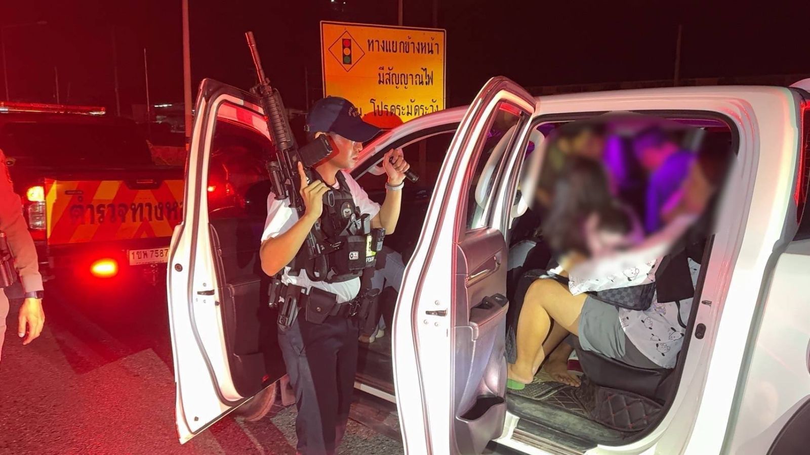 จากการตรวจสอบพบนายทองพี ซึ่งขับรถยนต์เก๋ง ยี่ห้อ ฮอนด้า ซีวิค สีดำ แสดงท่าทางมีพิรุธ และมีการใช้โทรศัพท์ตลอดเวลา เจ้าหน้าที่ชุดจับกุมจึงได้ขอตรวจสอบโทรศัพท์เครื่องดังกล่าว พบว่า นายทองพีฯ ได้ใช้โทรศัพท์เพื่อติดต่อกับ นายยะ ผู้ขับขี่รถยนต์กระบะ ยี่ห้อ โตโยต้า รีโว่ สีขาว ในการบอกเส้นทางในการใช้กระทำความผิดในครั้งนี้ และเจ้าหน้าที่ชุดจับกุมอีกชุดได้ทำการตรวจสอบ รถยนต์กระบะ ยี่ห้อ โตโยต้า รีโว่ สีขาว ที่มีนายยะเป็นคนขับ ก้ได้พบคนต่างด้าว เป็นชาวเมียนมา จำนวน 7 คน โดยสารมากับรถยนต์กระบะคันดังกล่าว