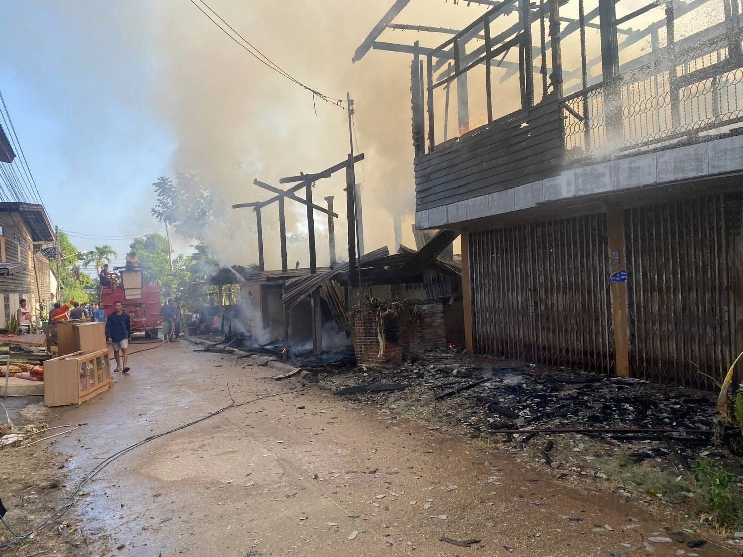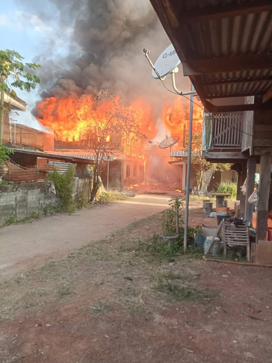 เพลิงไหม้บ้านเรือนประชาชน อ.ศรีสงคราม เสียหายวอดหลายหลัง จ.นครพนม