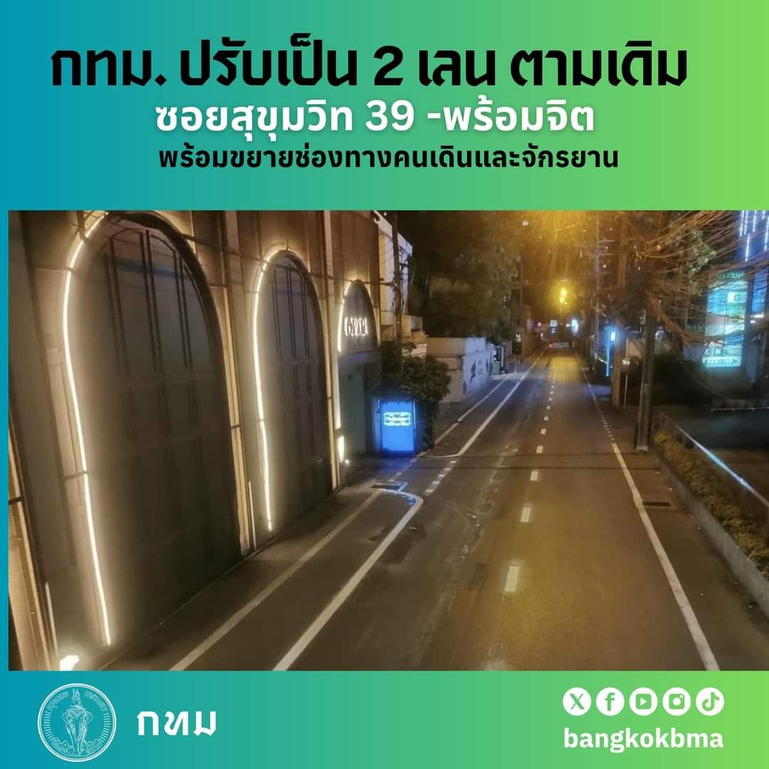 กทม. คืนช่องทางจราจร 2 เลน ถ.สุขุมวิท 39 (ซอยพร้อมจิต) พร้อมขยายช่องทางเดินเท้าและจักรยาน