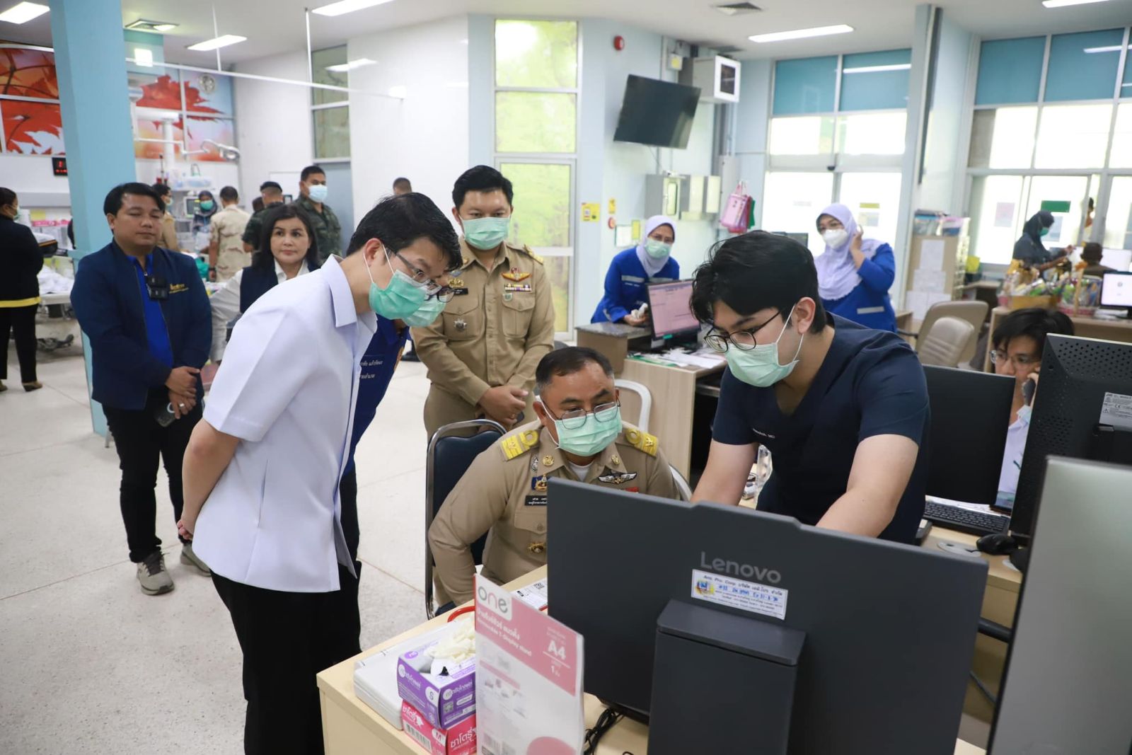 จากนั้นรองผู้ว่าราชการจังหวัดสงขลา เดินทางต่อไปยังห้องฉุกเฉินโรงพยาบาลเทพา เยี่ยมให้กำลังใจ นางสาวดอน แก้วลอย และเด็กหญิงบัณฑิตา วิทเวช โดยแพทย์ผู้ให้การรักษาให้ข้อมูลว่า นางสาวดอน ได้รับบาดเจ็บ ขาซ้ายโดนสะเก็ดระเบิดเล็กน้อย ไม่ได้โดนเส้นเลือดสำคัญ และไม่โดนอวัยวะอื่น ส่วนเด็กหญิงบัณฑิตา ได้รับบาดเจ็บ 4 จุด คือบริเวณหลังคอ หน้าคอ หน้าท้อง และก้น บริเวณหลังคอโดนที่กล้ามเนื้อไม่ได้โดนอวัยวะสำคัญ หน้าท้องที่กล้ามเนื้อหน้าท้องด้านนอก ไม่ได้เข้าในช่องท้อง ที่ก้นโดนแค่ชั้นไขมัน หน้าคอด้านหน้ามีสะเก็ดระเบิดฝังเข้าไปใกล้กับเส้นเลือดแดงใหญ่ เเต่โชคดีที่ไม่โดนเส้นเลือด ซึ่งเเพทย์ต้องทำการผ่าตัดออก อาการโดยรวมยังคงที่ ผู้ได้รับบาดเจ็บยังมีกำลังใจดี มีทีมแพทย์คอยดูอาการอย่างใกล้ชิด