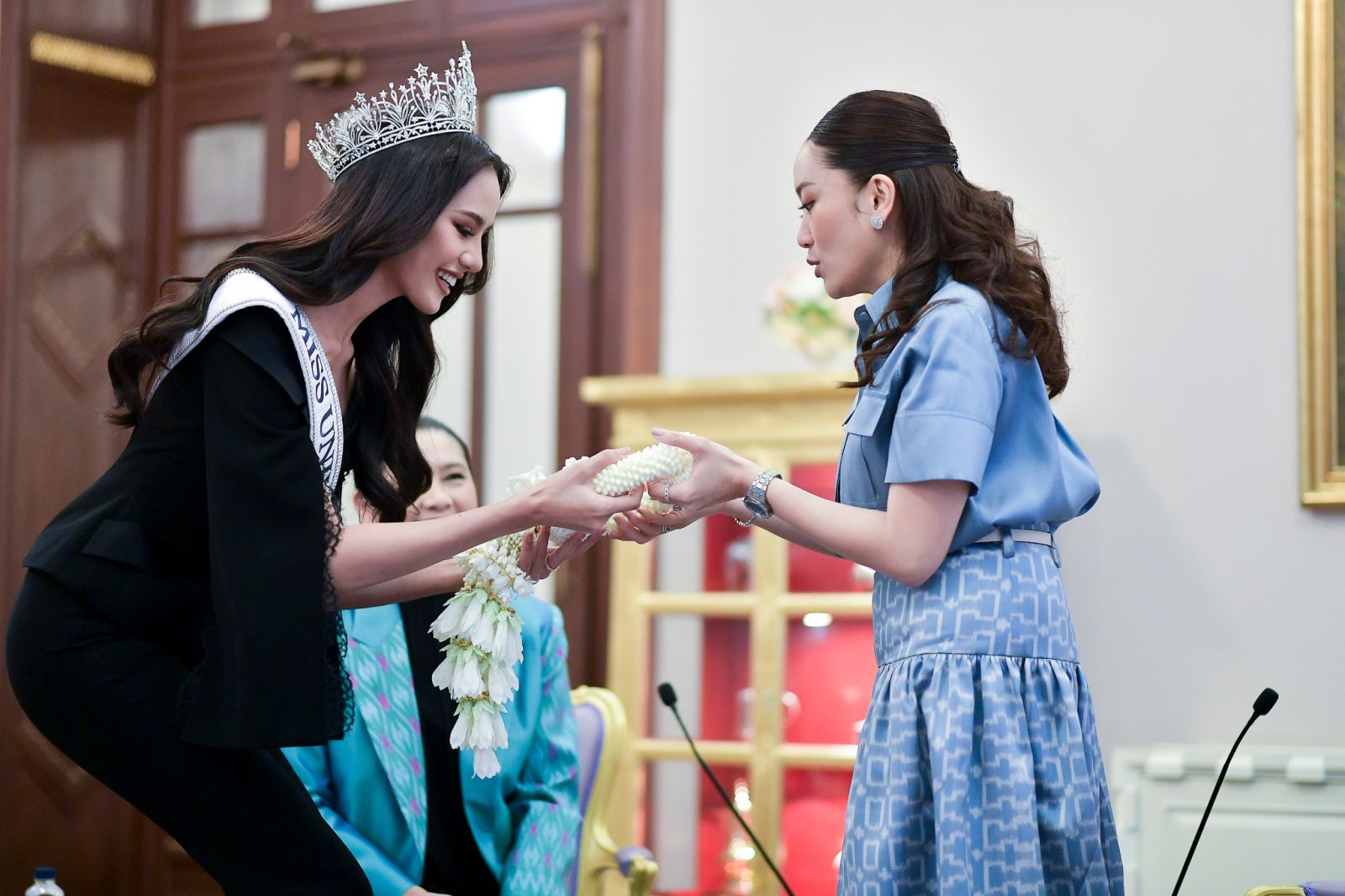 กรรมการผู้จัดการบริษัท ทีพีเอ็น โกลบอล จำกัด กล่าวขอบคุณนายกรัฐมนตรี ที่ให้เข้าเยี่ยมคารวะ ถือเป็นโอกาสที่จะพูดคุยหารือกับรัฐบาล ยินดีที่เวที Miss Universe 2024 มีส่วนร่วมในการขับเคลื่อน Soft power ของไทย ตามที่นายกรัฐมนตรีให้นโยบายการผลักดันเศรษฐกิจชุมชนให้เกิดความยั่งยืน โดยการนำผ้าไทยของไทยออกสู่สายตาชาวต่างชาติ พร้อมทั้ง ยังได้รับชุดผ้าไหมไทยสีน้ำตาลจากแบรนด์ “SIRIVANNAVARI" ในสมเด็จพระเจ้าลูกเธอ เจ้าฟ้าสิริวัณณวรี นารีรัตนราชกัญญา ซึ่งได้รับความสนใจจากชาวต่างชาติอย่างมาก ทั้งนี้ กองประกวดมิสยูนิเวิร์สไทยแลนด์ ยินดีทำงานร่วมกับรัฐบาลตามแนวนโยบายของรัฐ เพื่อขับเคลื่อนประเทศไทยไปด้วยกัน