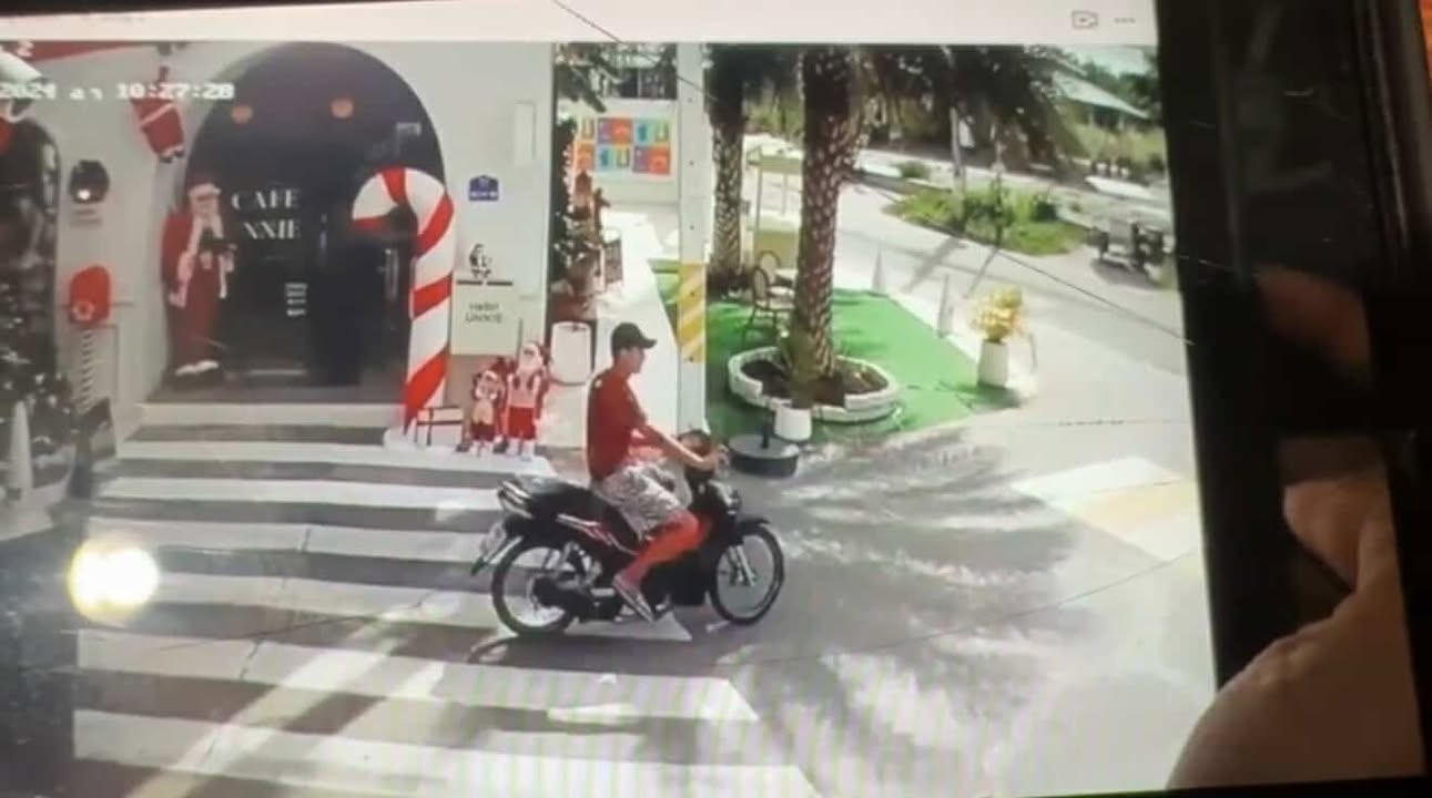โดยมีท่าทางมีพิรุธ ซึ่งสายตาคนร้าย เอาแต่จ้องมองรถจักรยานยนต์ตัวเอง แบบไม่ละสายตา เมื่อสบโอกาสปลอดผู้คน จึงเข้าไปโจรกรรม แล้วเข็นรถไปแอบจอดอำพรางซอยฝั่งตรงข้ามหอพัก จากนั้นไม่นานก็ขับได้ขับหลบหนีไป ก่อนภาพกล้องวงจรปิดหลักฐานเข้าแจ้งความที่ สภ.เมืองพัทยา เพื่อให้ตำรวจติดตามจับกุมตัวคนร้ายมาดำเนินคดี