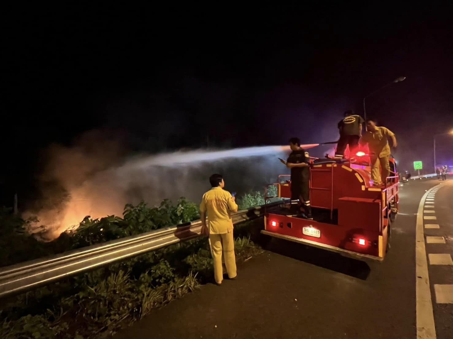รถอเนกประสงค์พลิกคว่ำลงข้างทางแล้วเกิดเพลิงลุกไหม้ มีผู้บาดเจ็บ 2 รายและเสียชีวิตชาย 2 รายเป็นชาวปากีสถาน จ.แพร่