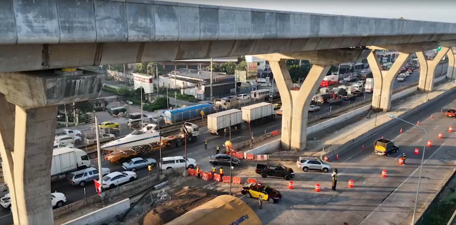 จากเหตุคานเหล็กถล่ม! บนถนนพระราม 2 กม.21+600 กรมทางหลวง โดยแขวงทางหลวงสมุทรสาคร ร่วมกับ ตำรวจทางหลวง แลตำรวจ สภ.เมืองสมุทรสาคร ทดลองเปิดช่องทางพิเศษบนทางหลวงหมายเลข 35 (ถนนพระราม 2) ระหว่าง กม.20+900 (บริเวณตลาดมหาชัยเมืองใหม่) ถึง กม.21+800 จำนวน 1 ช่องจราจร ระยะทางประมาณ 900 เมตร สำหรับรถขาออก กรุงเทพมหานคร